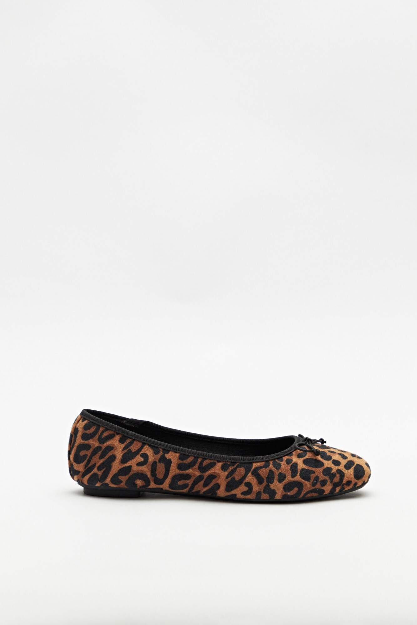 Balerinas animal prinr con aplique de moña a tono, de suela acolchonada y confortable.