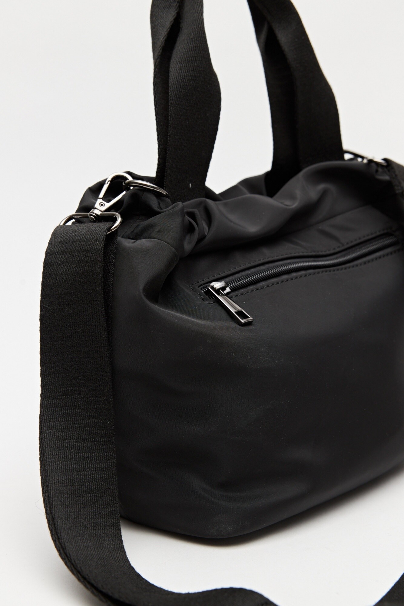 Cartera de nylon de diseño utilitario confeccionada en material liviano y resistente, ideal para el uso diario. Su formato flexible y amplio se adapta cómodamente, mientras que las asas superiores permiten llevarla en mano o al hombro, y la correa desmontable suma una opción cruzada más funcional.