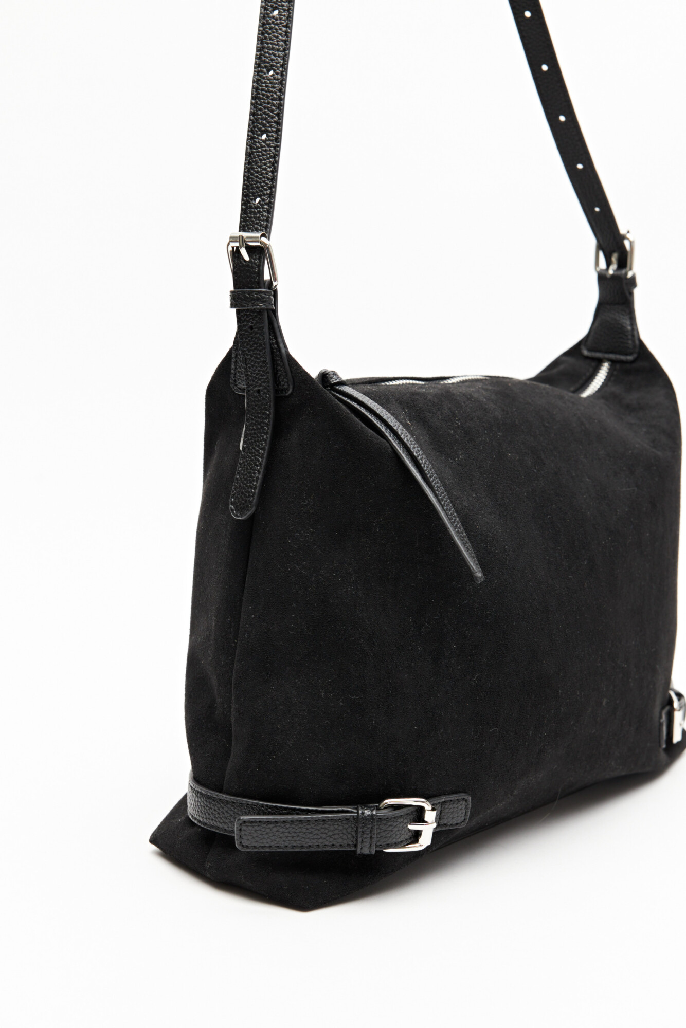 Cuenta con correa regulable para adaptar el largo según preferencia y detalles laterales con hebillas que suman carácter y un guiño contemporáneo. Un accesorio versátil que eleva looks urbanos, acompañando tanto estilismos de día como propuestas más pulidas.