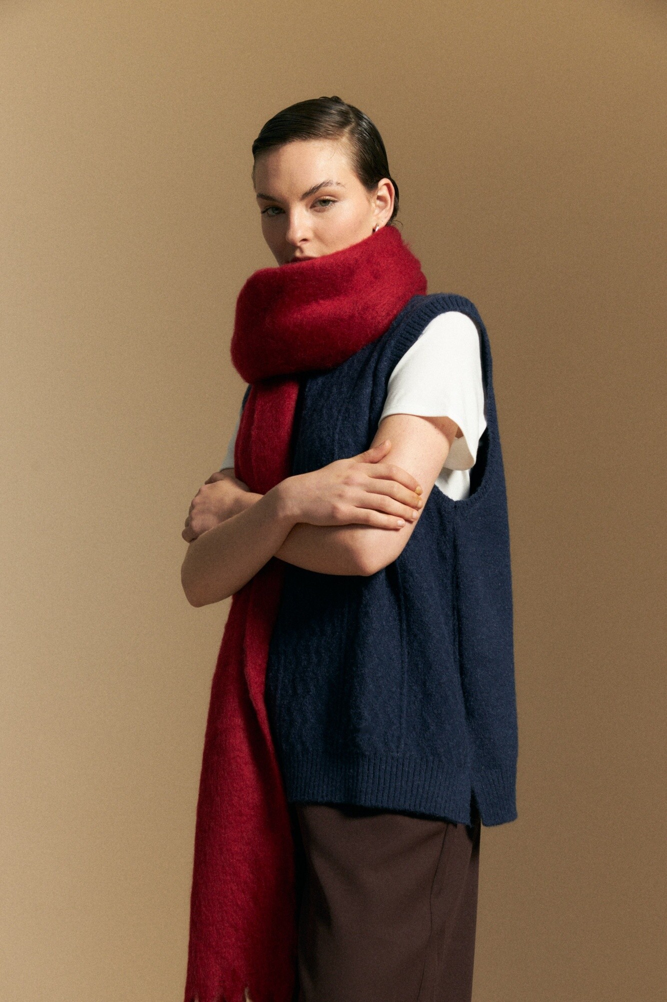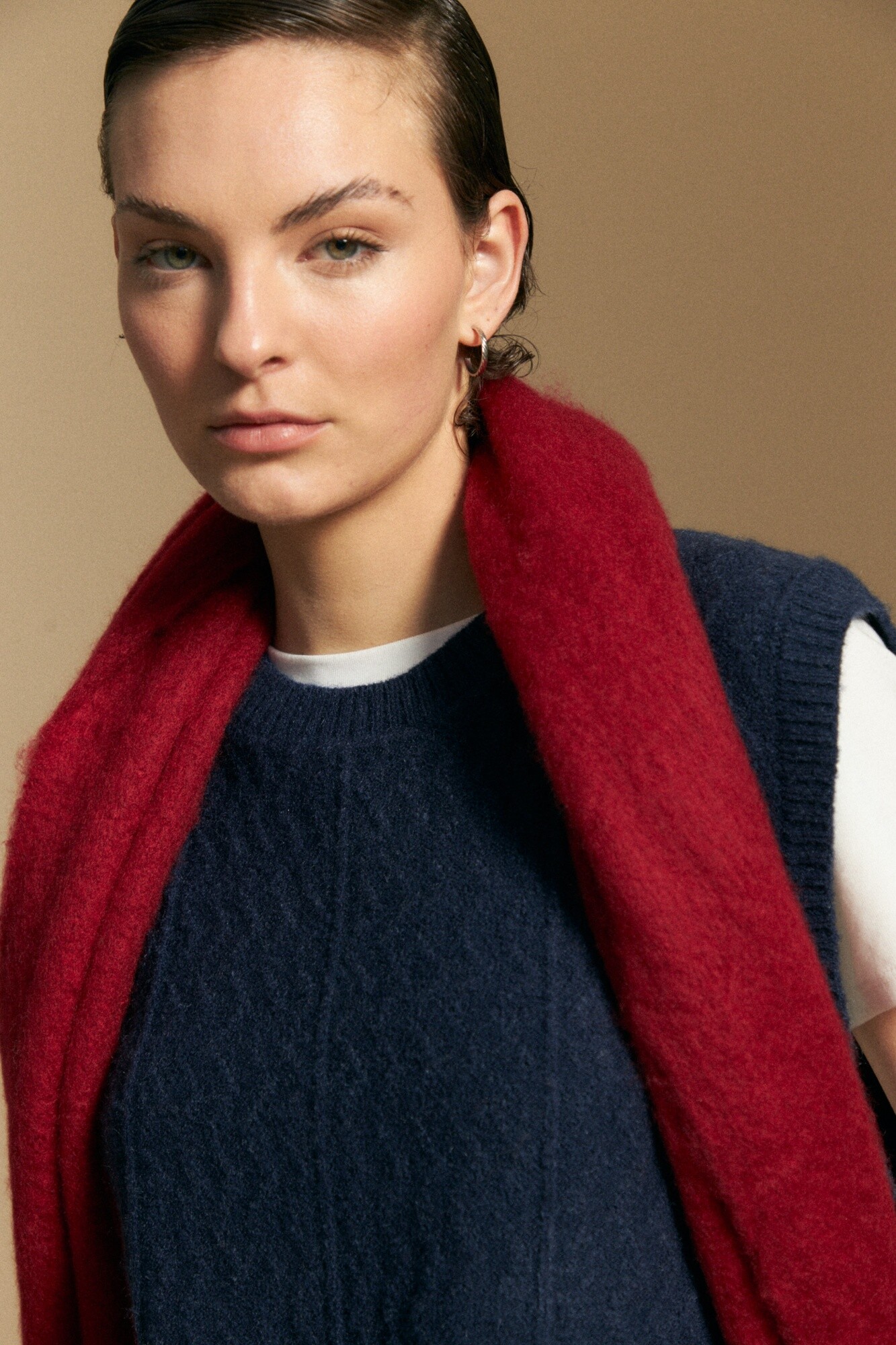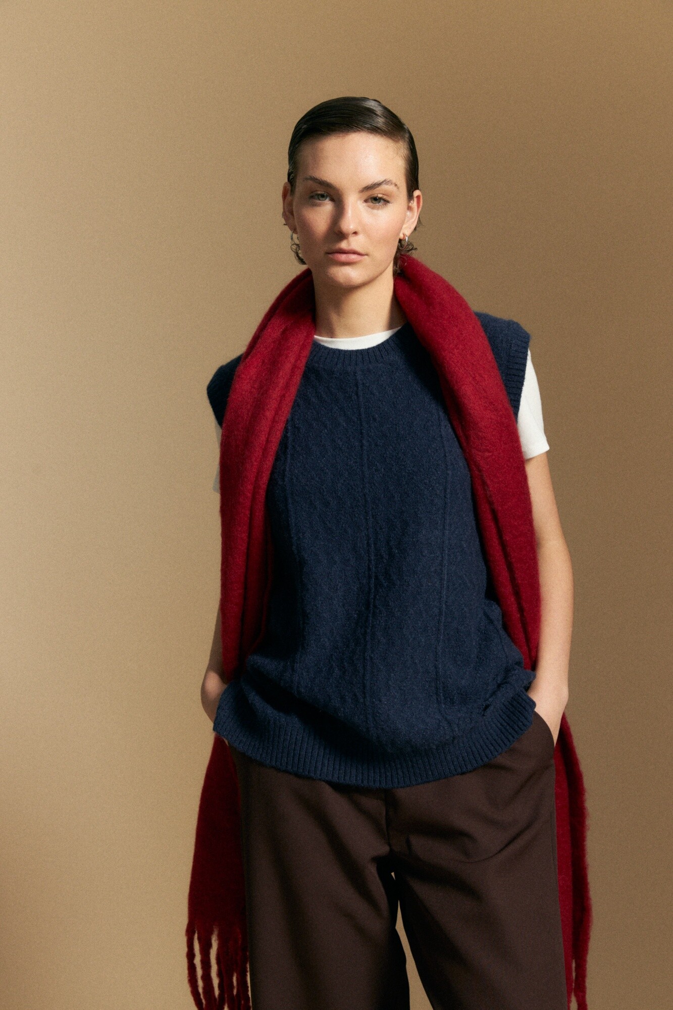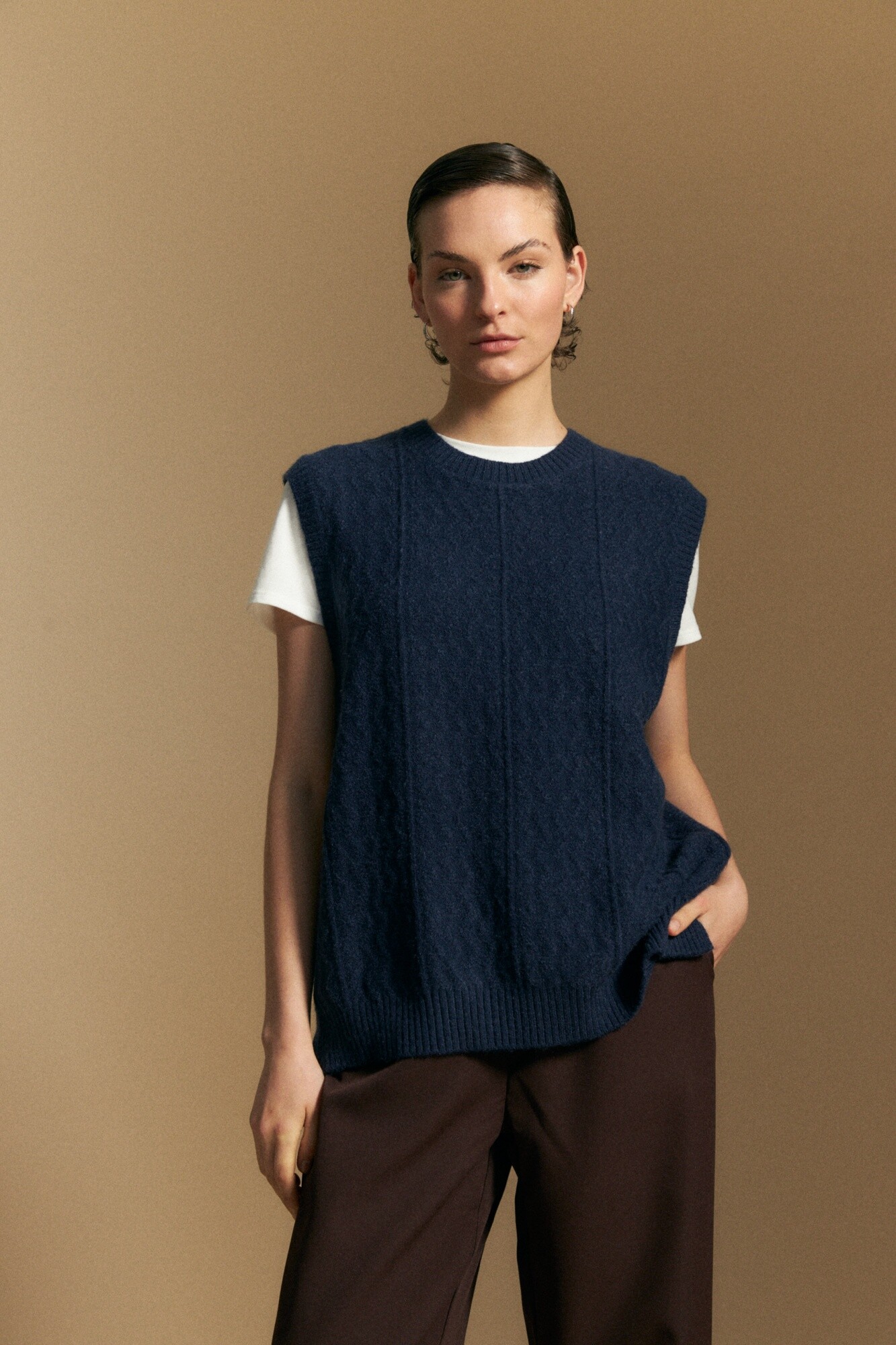 Chaleco tejido con textura sutil en relieve que aporta profundidad y un aire contemporáneo al diseño. De calce relajado y escote cerrado, presenta terminaciones acanaladas que estructuran la silueta y lo hacen ideal para superponer sobre camisas o remeras. Una prenda versátil que se adapta tanto a looks casuales como a combinaciones más armadas.