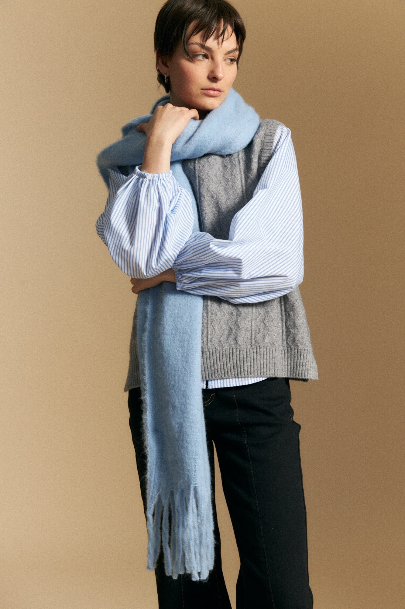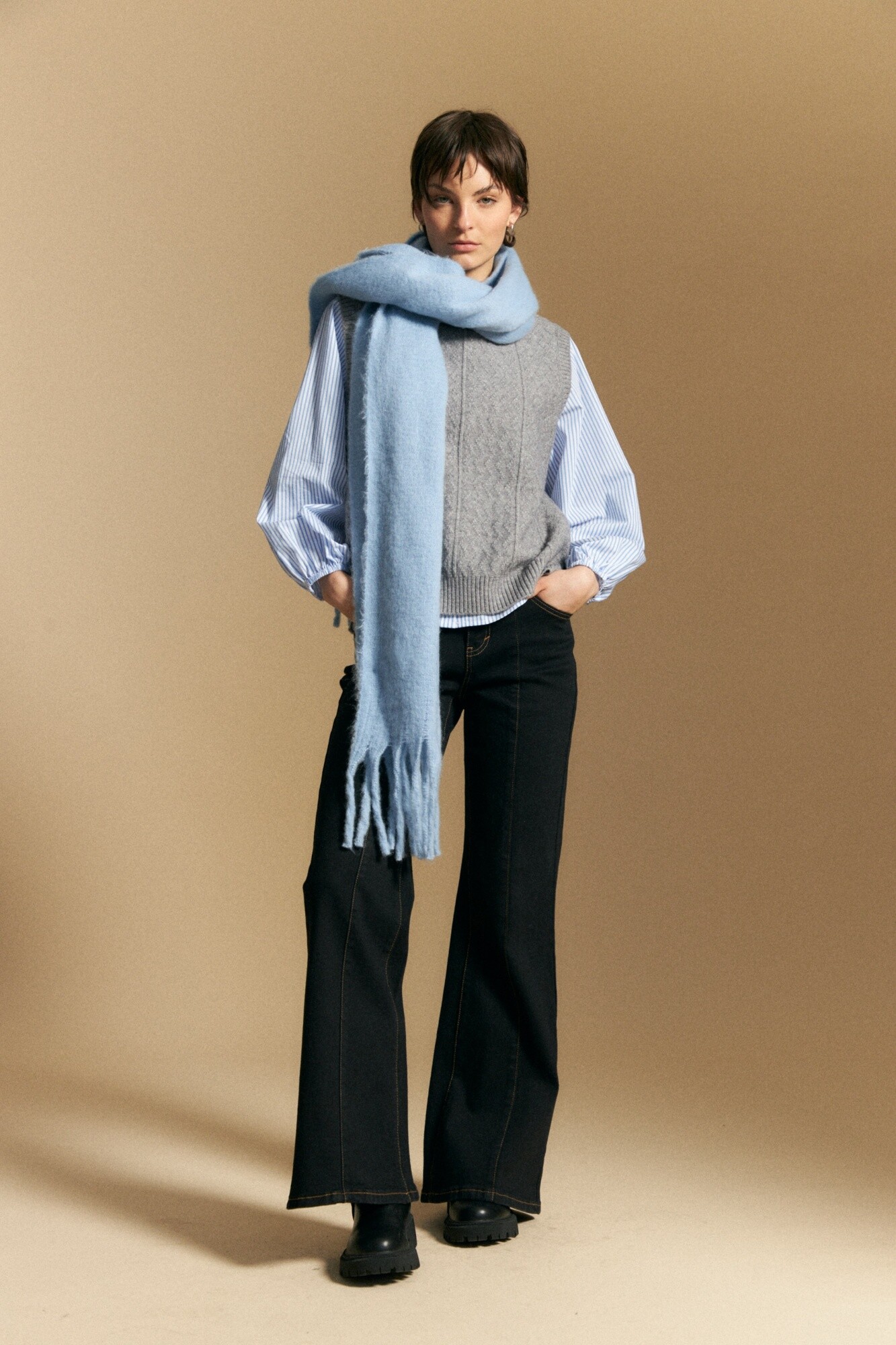 Allie CHALECO FEIRA CHALECO FEIRA Chaleco tejido con textura sutil en relieve que aporta profundidad y un aire contemporáneo al diseño. De calce relajado y escote cerrado, presenta terminaciones acanaladas que estructuran la silueta y lo hacen ideal para superponer sobre camisas o remeras. Una prenda versátil que se adapta tanto a looks casuales como a combinaciones más armadas. 526210305001084