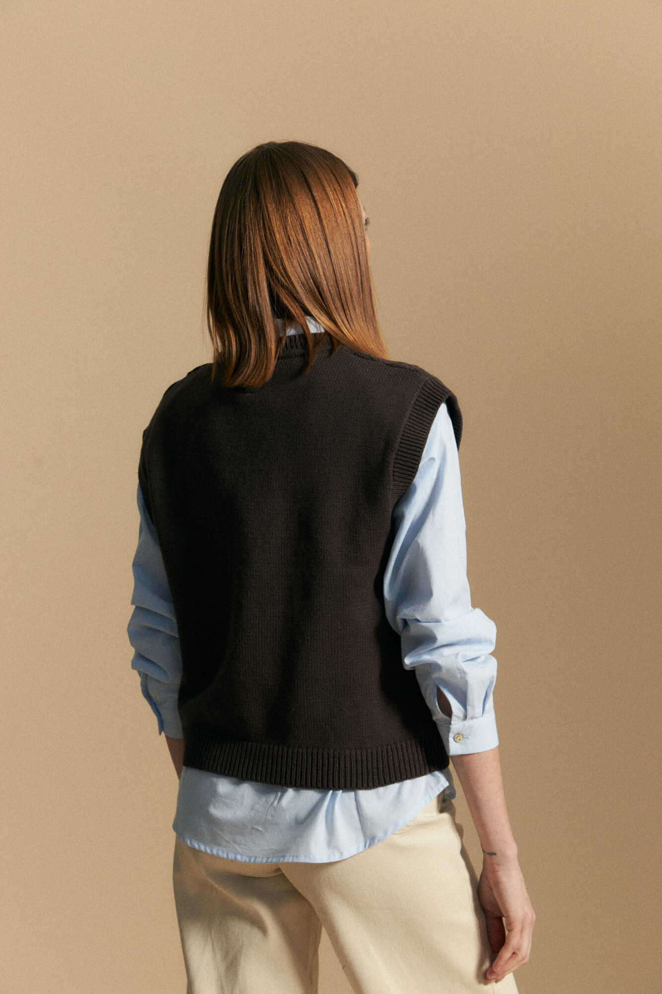 Chaleco tejido de calce cómodo y diseño versátil, ideal para sumar textura y abrigo liviano a distintos estilismos. Su construcción en punto combina suavidad y resistencia, logrando una prenda funcional que se adapta con facilidad a looks urbanos y más pulidos. Un básico actualizado que funciona como capa clave en propuestas de temporada y se integra naturalmente a un guardarropa atemporal.