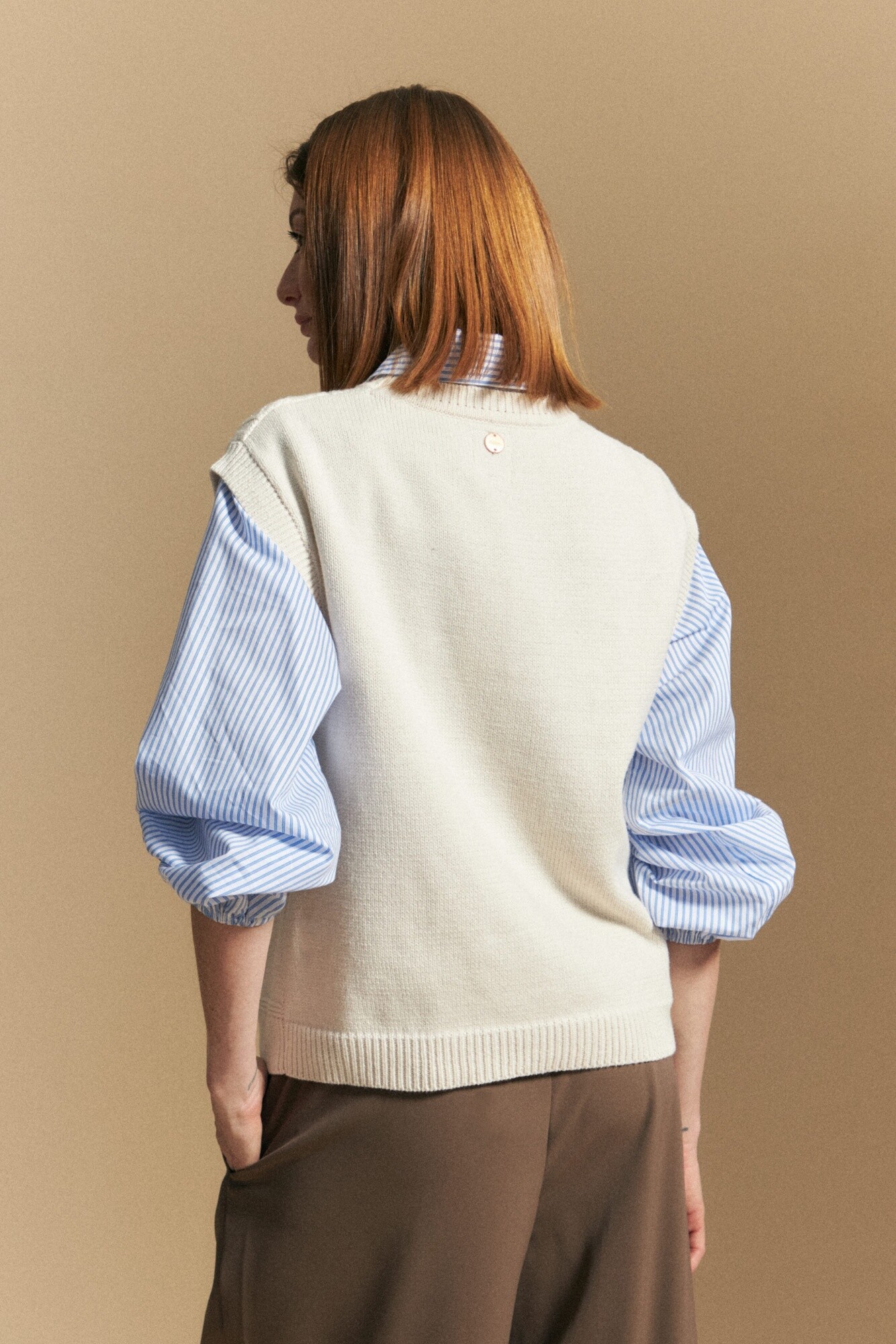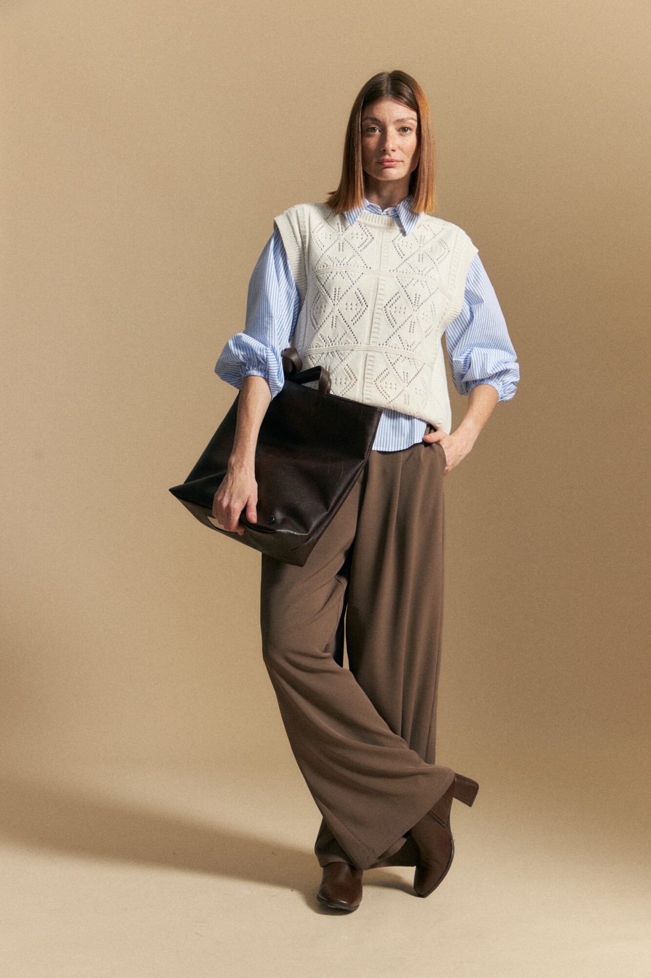 Chaleco tejido de calce cómodo y diseño versátil, ideal para sumar textura y abrigo liviano a distintos estilismos. Su construcción en punto combina suavidad y resistencia, logrando una prenda funcional que se adapta con facilidad a looks urbanos y más pulidos. Un básico actualizado que funciona como capa clave en propuestas de temporada y se integra naturalmente a un guardarropa atemporal.