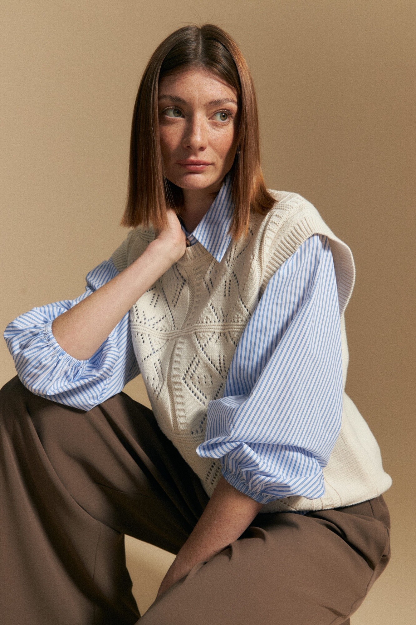 Allie CHALECO LIVENSA CHALECO LIVENSA Chaleco tejido de calce cómodo y diseño versátil, ideal para sumar textura y abrigo liviano a distintos estilismos. Su construcción en punto combina suavidad y resistencia, logrando una prenda funcional que se adapta con facilidad a looks urbanos y más pulidos. Un básico actualizado que funciona como capa clave en propuestas de temporada y se integra naturalmente a un guardarropa atemporal. 526203705002035