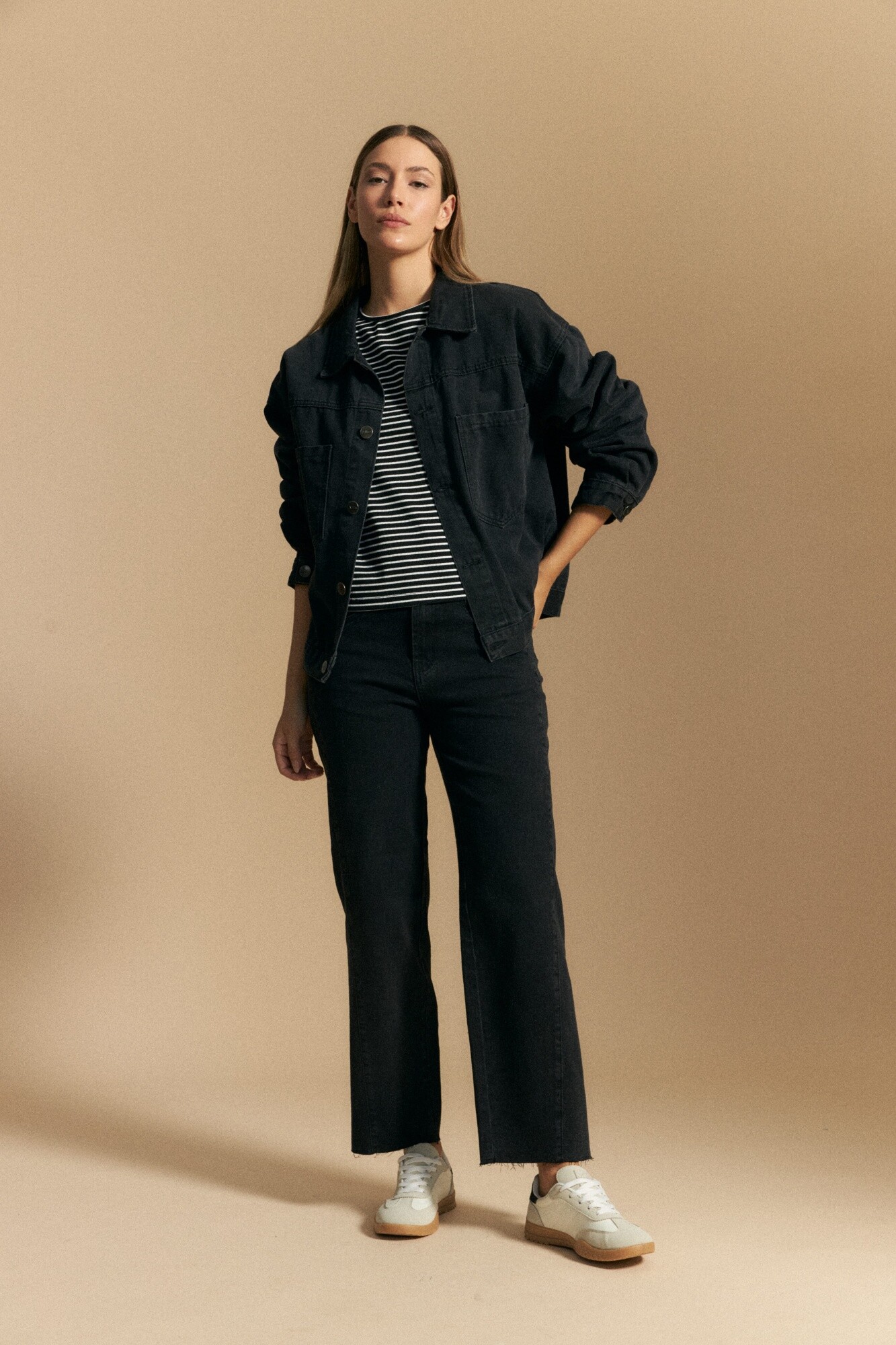 Jean recto de tiro medio confeccionado en denim elastizado que combina estructura y comodidad. Su calce de pierna recta mantiene la esencia clásica del denim, mientras que la elasticidad del tejido aporta mayor libertad de movimiento y un ajuste confortable durante todo el día. Un básico versátil que se adapta fácilmente a distintos estilos y ocasiones.