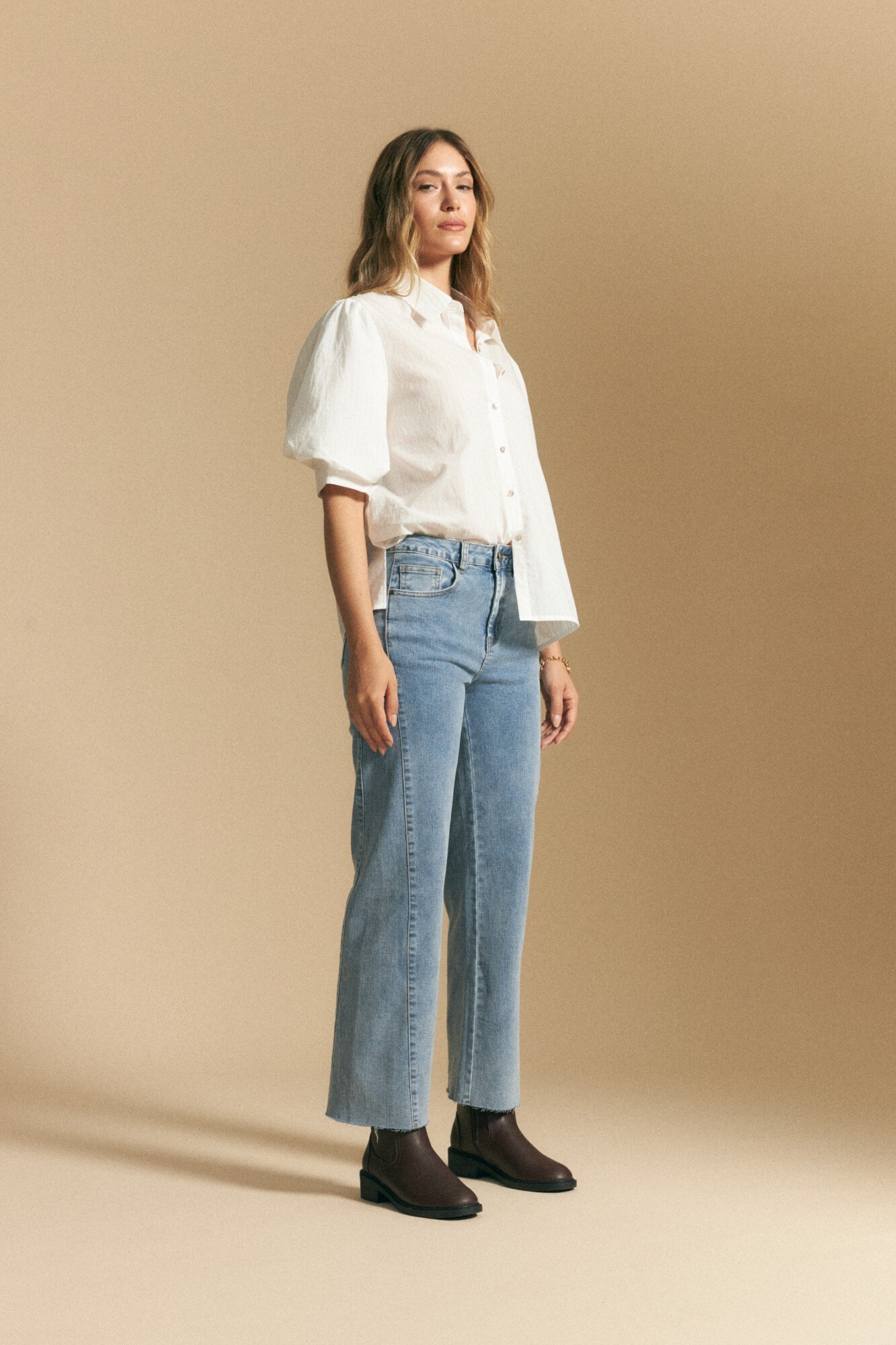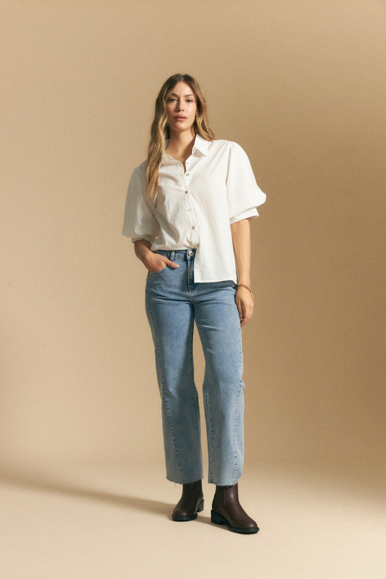 Jean recto de tiro medio confeccionado en denim elastizado que combina estructura y comodidad. Su calce de pierna recta mantiene la esencia clásica del denim, mientras que la elasticidad del tejido aporta mayor libertad de movimiento y un ajuste confortable durante todo el día. Un básico versátil que se adapta fácilmente a distintos estilos y ocasiones.