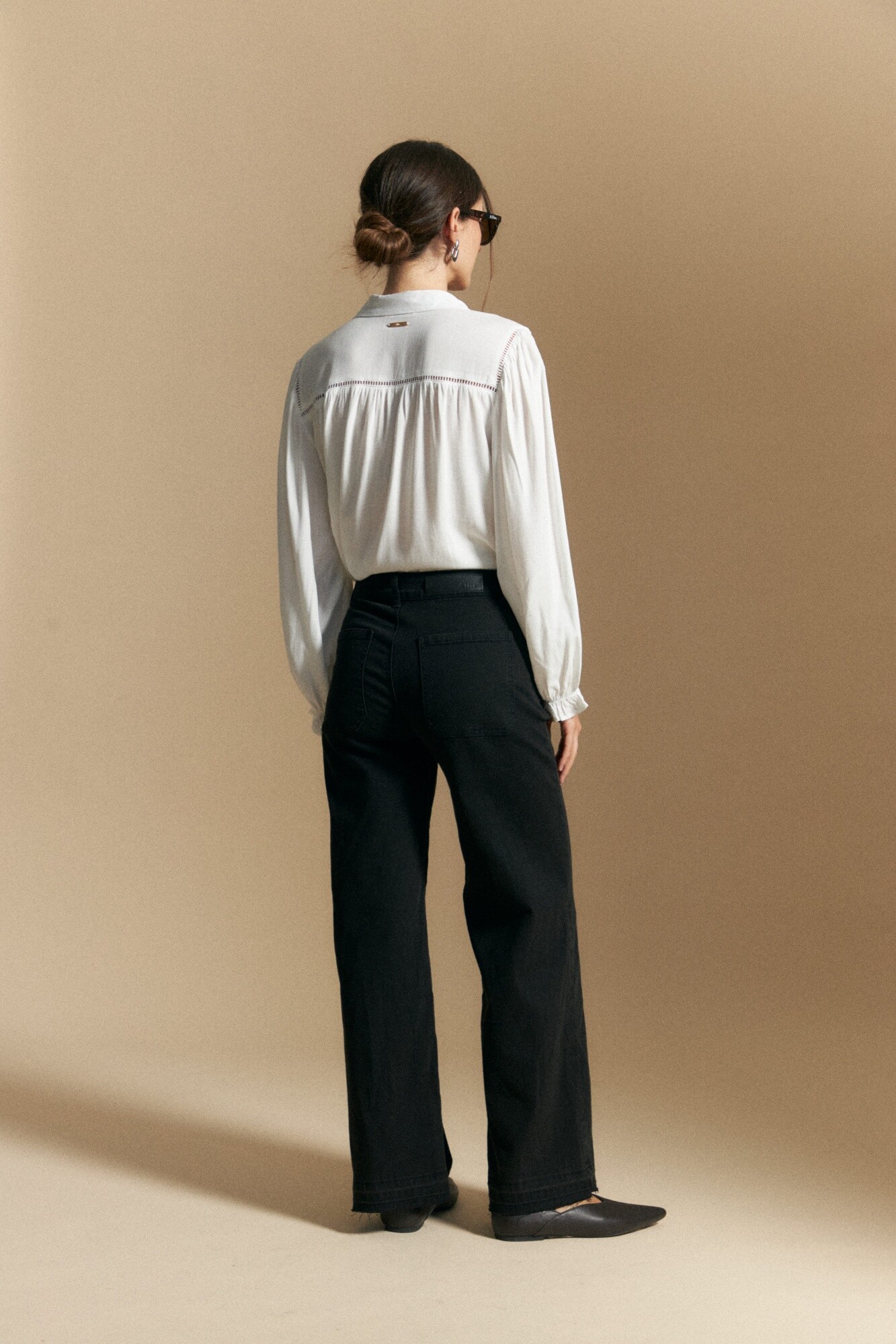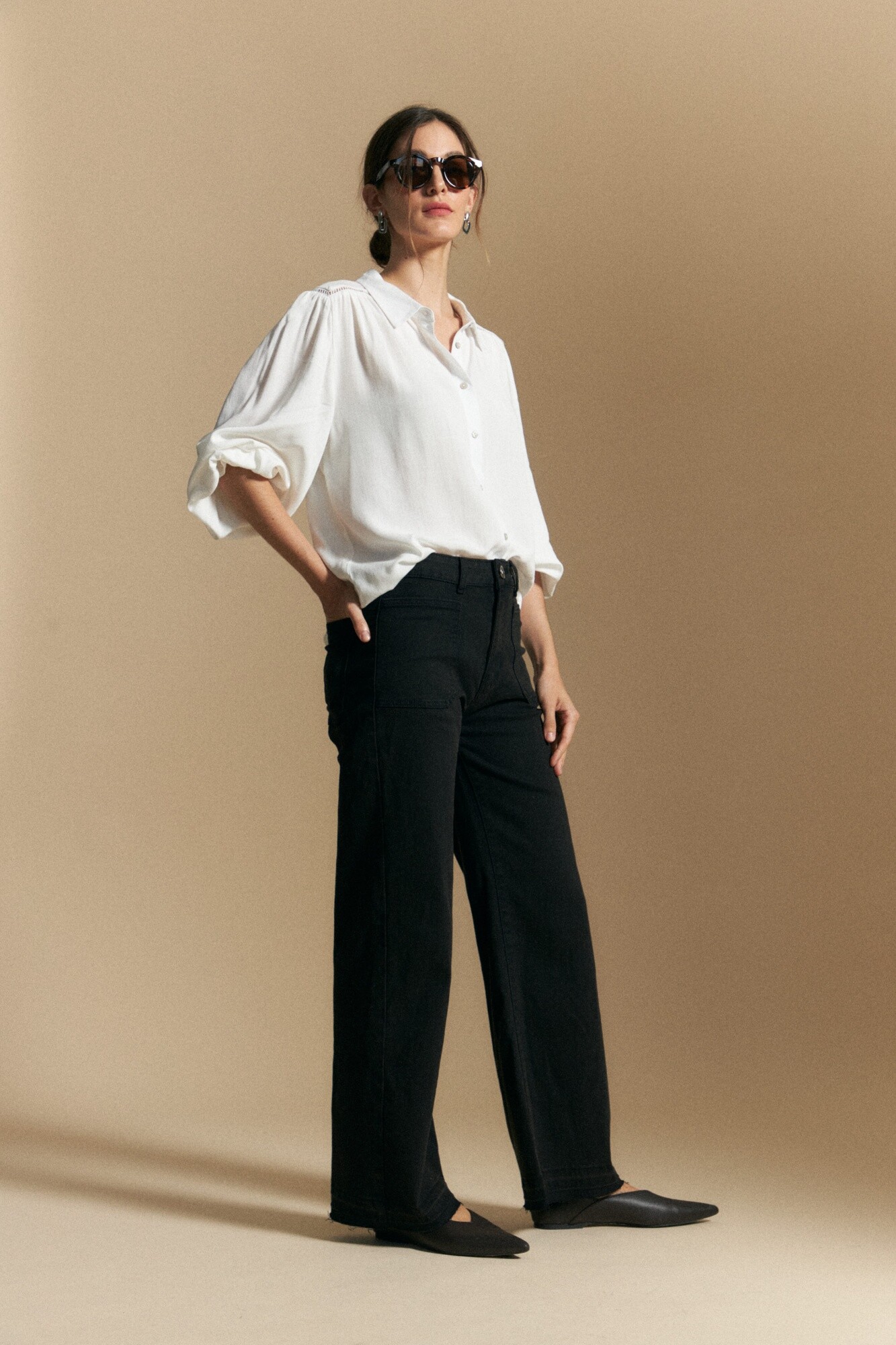 Jean wide leg de tiro medio confeccionado en denim cotton spandex, que combina estructura y confort para un calce cómodo y favorecedor. Su silueta amplia aporta una caída relajada y actual, alineada con las tendencias, mientras mantiene un perfil clásico que lo vuelve fácil de integrar a distintos estilismos. Un diseño versátil que funciona tanto en looks urbanos como en propuestas más pulidas, clave para elevar cualquier look según cómo se combine.