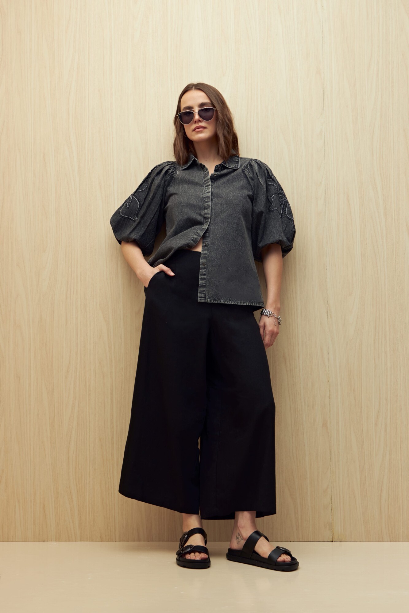 Allie PANTALÓN KARIM PANTALÓN KARIM Pantalón de lino fit wide leg, un imprescindible de temporada pensado para lograr siluetas relajadas pero con ese aire pulido que encanta. Su calce ancho cae con un movimiento fluido gracias a la mezcla de fibras naturales, aportando frescura y comodidad incluso en los días más cálidos. El tiro alto estiliza y define la cintura, mientras que la pierna amplia genera un look moderno y en tendencia, fácil de llevar tanto con tops al cuerpo como con camisas livianas. 526101703302002