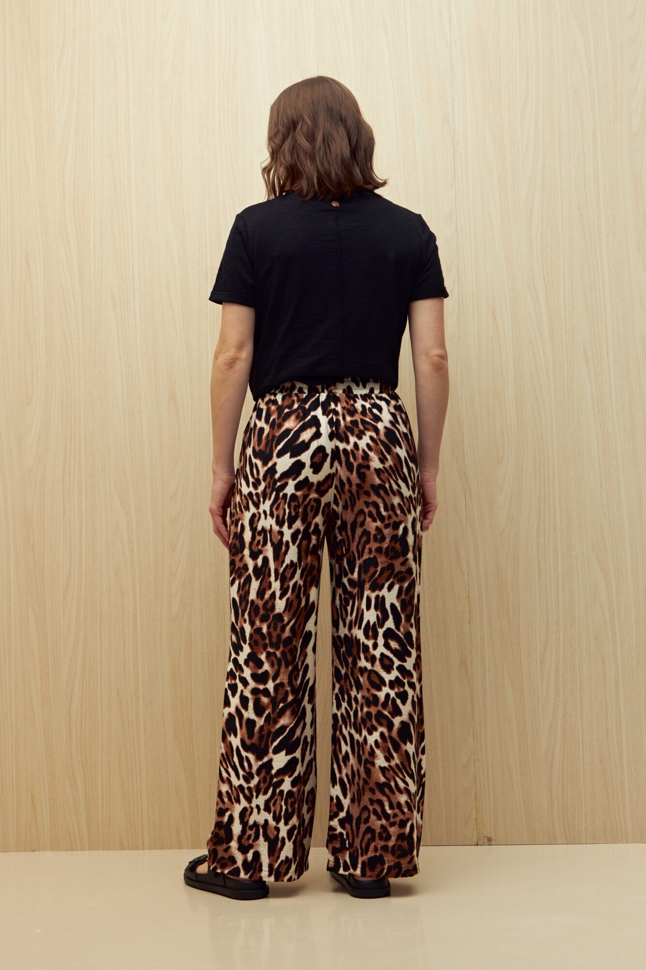 Pantalón ancho estampado confeccionado en un tejido liviano y fluido, este pantalón de corte amplio combina comodidad y estilo en una silueta que acompaña cada movimiento. Su cintura elastizada con lazo ajustable ofrece un calce relajado, ideal para looks frescos y versátiles. El diseño estampado aporta un toque moderno que eleva cualquier outfit, perfecto para días de verano o escapadas de fin de semana.