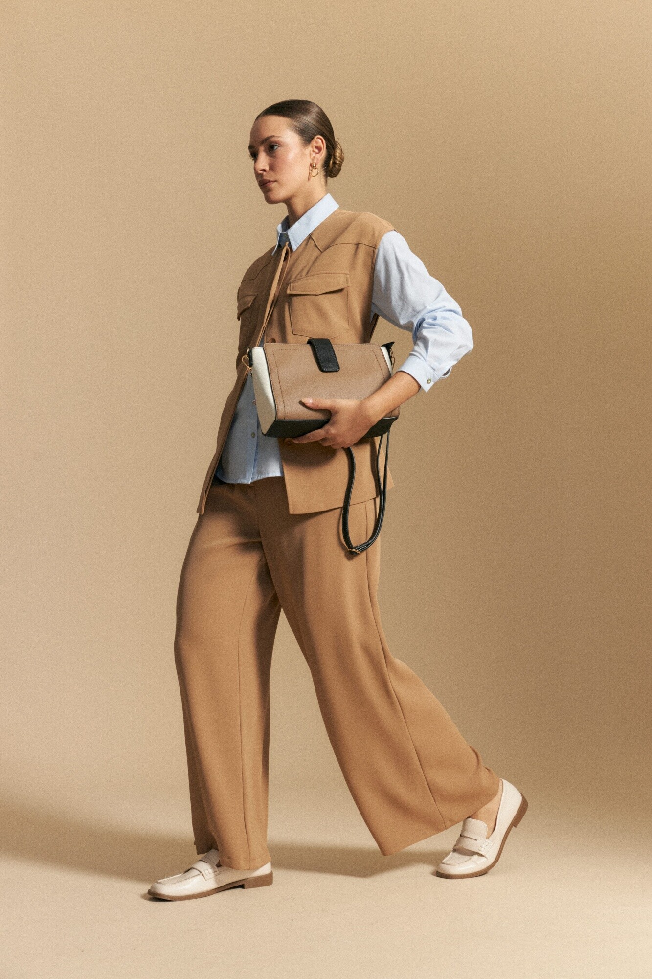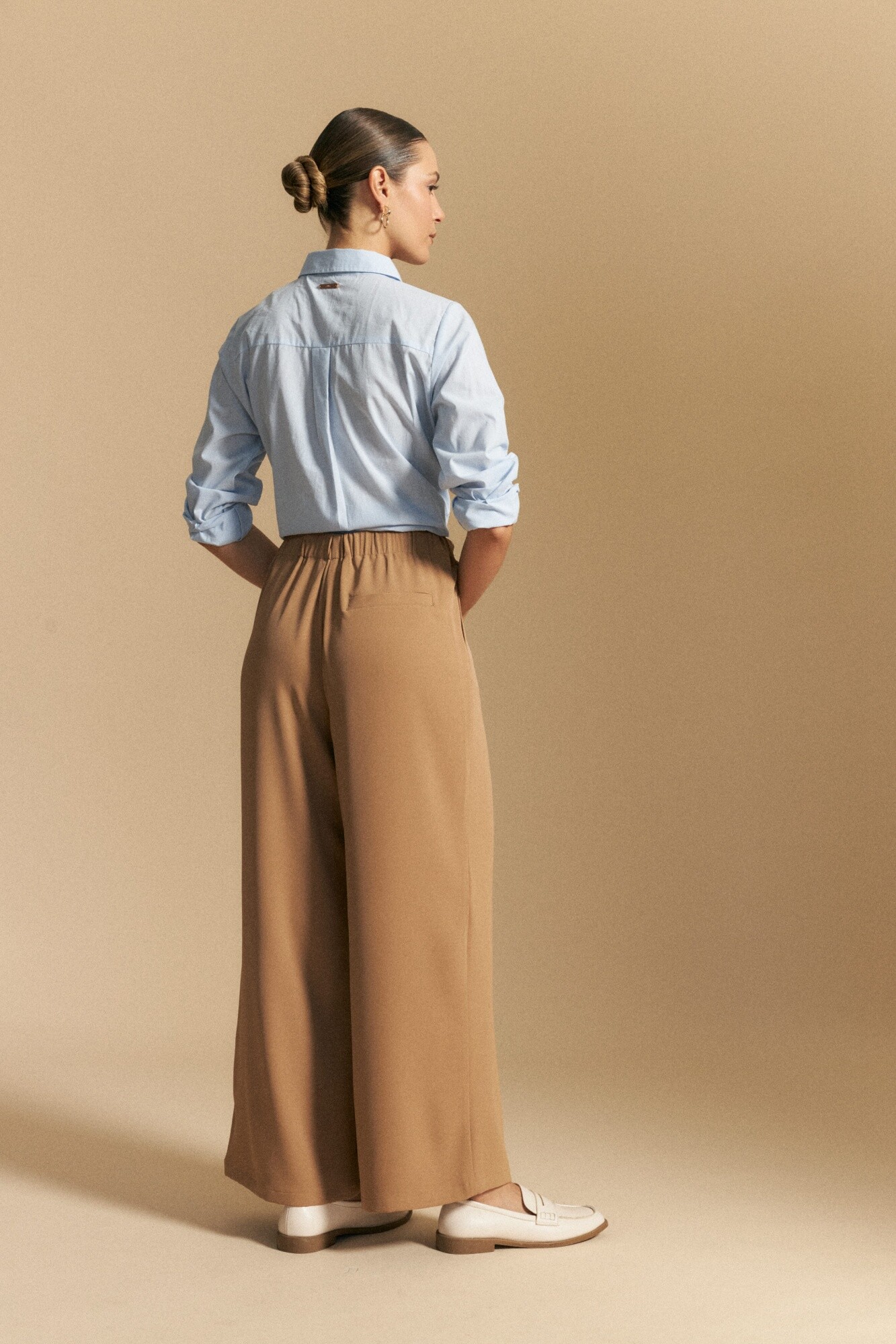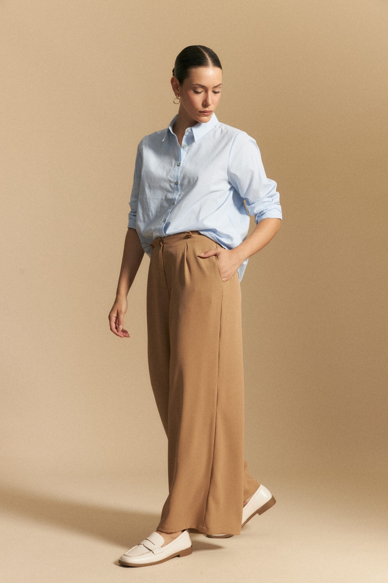 Pantalón ancho de silueta moderna y calce cómodo, pensado para acompañar distintos momentos del día. Su diseño limpio y fluido lo convierte en una opción versátil que funciona perfectamente en looks de office, propuestas de día o estilismos de after office, adaptándose con facilidad según cómo se combine. Una prenda actual que aporta equilibrio entre comodidad y una estética prolija. Con cordones ajustables en la cintura.