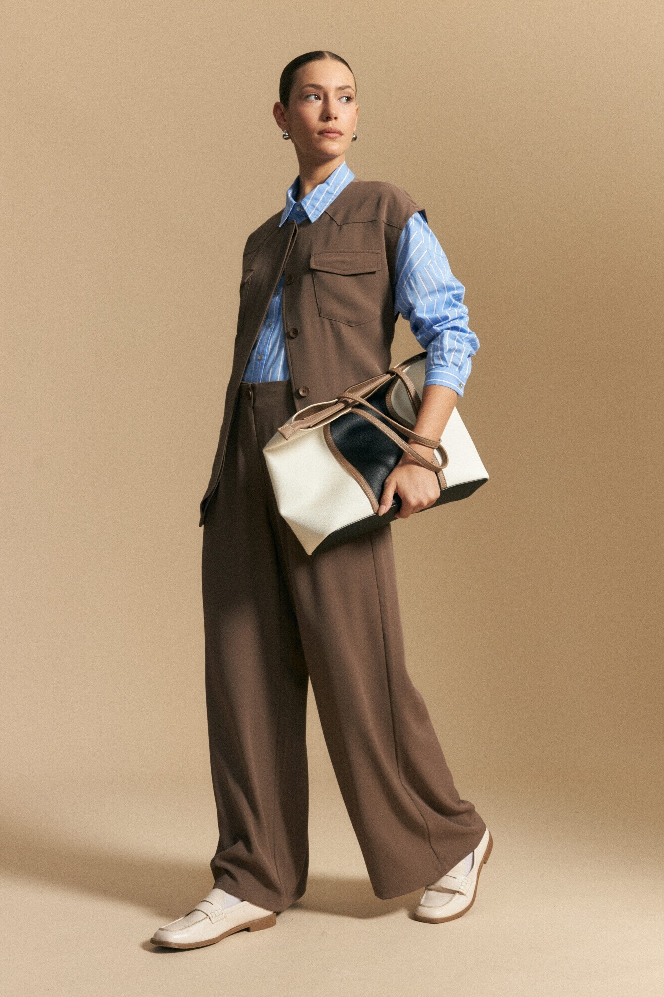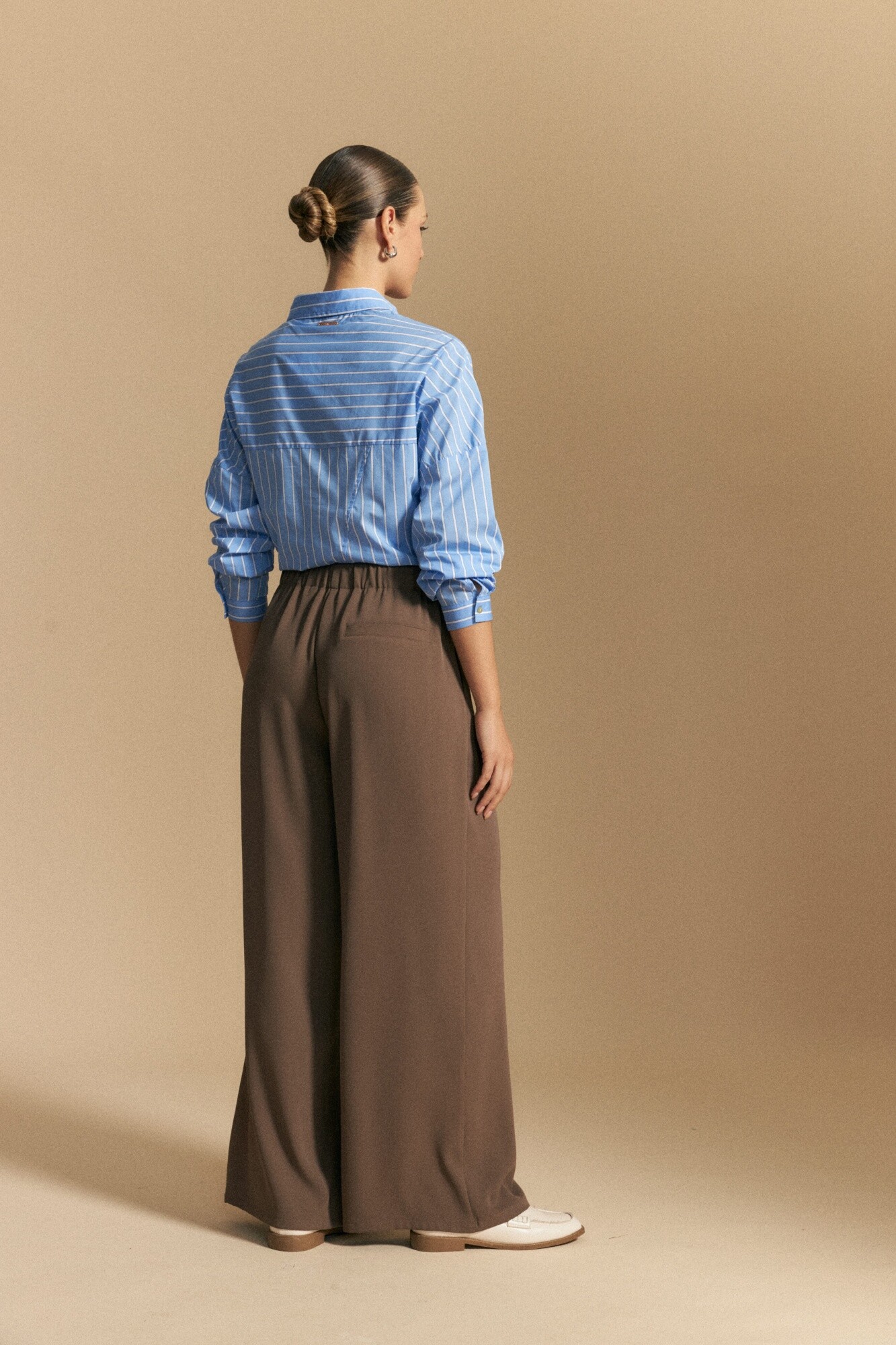 Pantalón ancho de silueta moderna y calce cómodo, pensado para acompañar distintos momentos del día. Su diseño limpio y fluido lo convierte en una opción versátil que funciona perfectamente en looks de office, propuestas de día o estilismos de after office, adaptándose con facilidad según cómo se combine. Una prenda actual que aporta equilibrio entre comodidad y una estética prolija. Con cordones ajustables en la cintura.