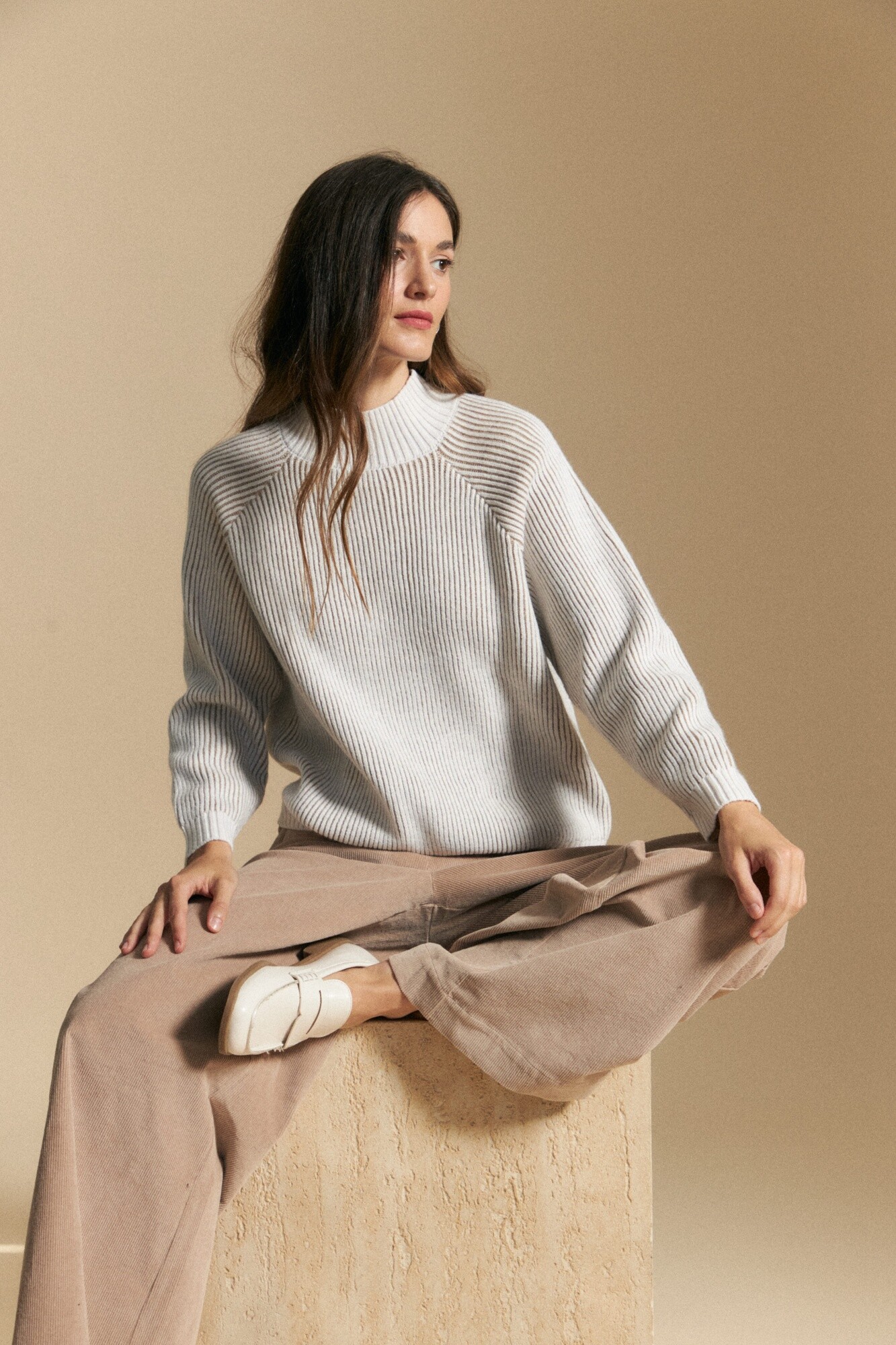 Polera tejida de textura acanalada que combina abrigo y estructura en una silueta moderna. El cuello alto aporta presencia y calidez, mientras el diseño de líneas marcadas en el tejido suma un detalle visual que estiliza la prenda. De calce cómodo y versátil, se adapta fácilmente a distintos looks, convirtiéndose en una opción funcional para el día a día.