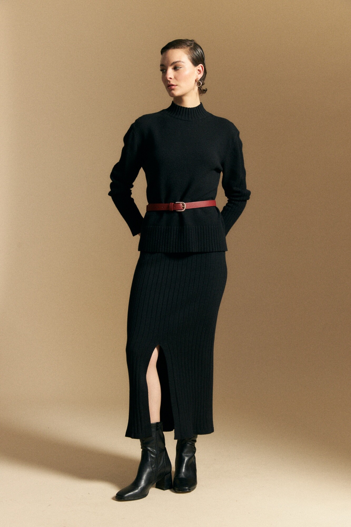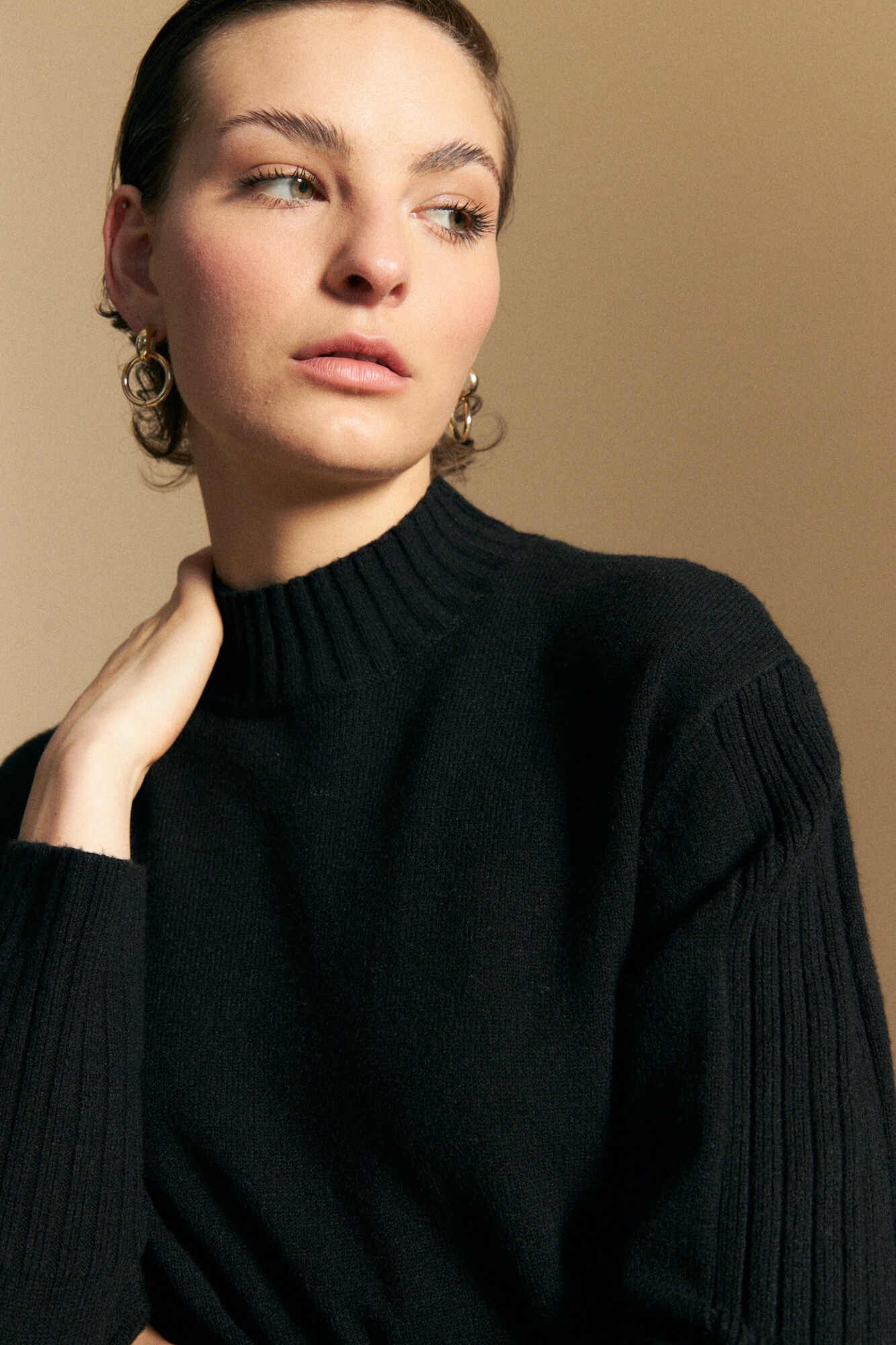 Polera tejida de cuello alto con diseño minimalista y textura suave, ideal como básico versátil de temporada. El calce relajado se combina con terminaciones acanaladas en cuello, puños y ruedo que aportan estructura, mientras que el detalle de trama vertical en mangas y espalda suma interés sutil. El tejido con viscosa brinda suavidad al tacto y una caída liviana, perfecta para usar sola o como primera capa en looks invernales. Una prenda atemporal que se adapta tanto a estilismos urbanos como más clásicos.
