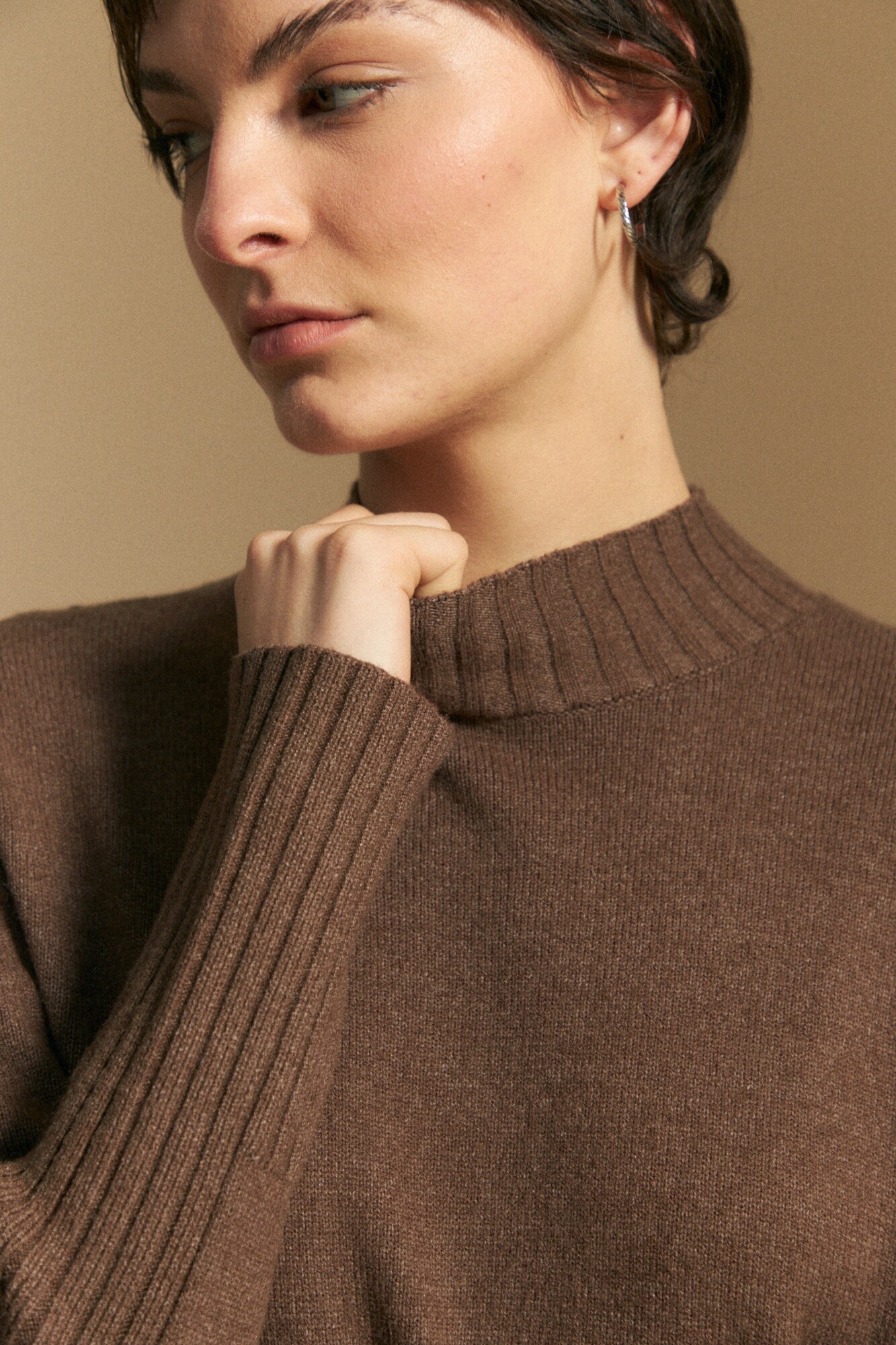 Polera tejida de cuello alto con diseño minimalista y textura suave, ideal como básico versátil de temporada. El calce relajado se combina con terminaciones acanaladas en cuello, puños y ruedo que aportan estructura, mientras que el detalle de trama vertical en mangas y espalda suma interés sutil. El tejido con viscosa brinda suavidad al tacto y una caída liviana, perfecta para usar sola o como primera capa en looks invernales. Una prenda atemporal que se adapta tanto a estilismos urbanos como más clásicos.
