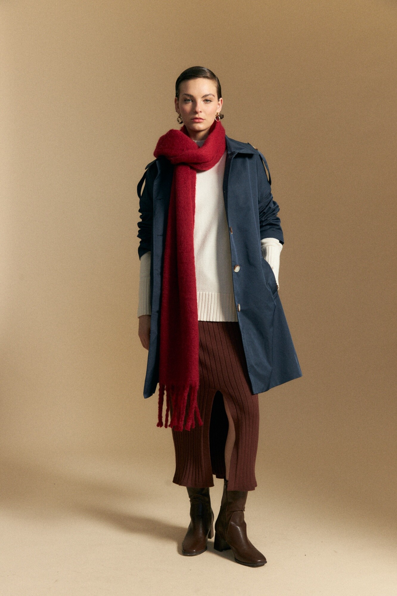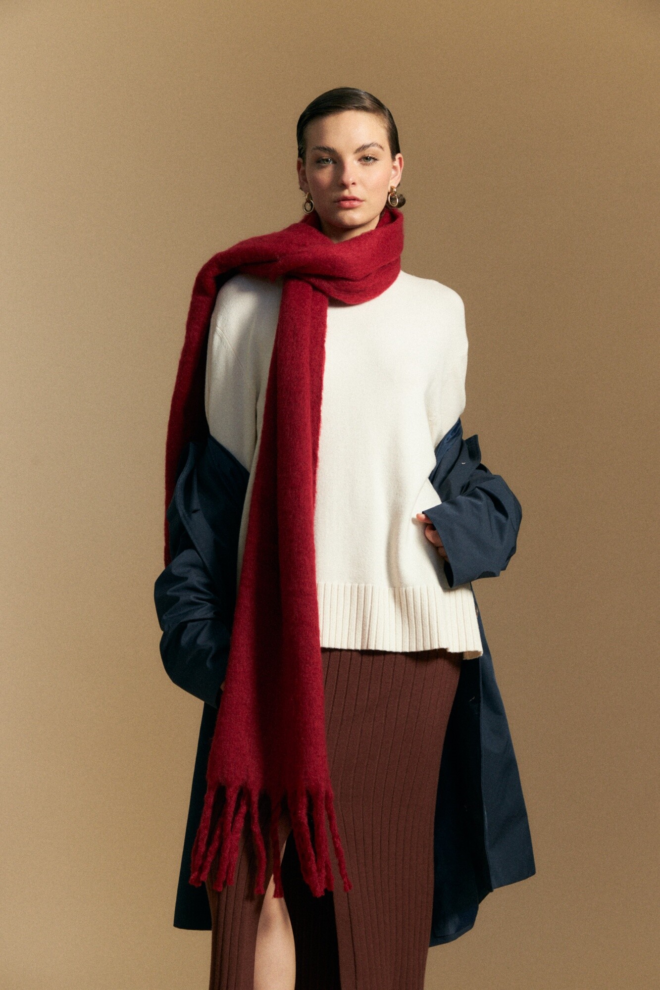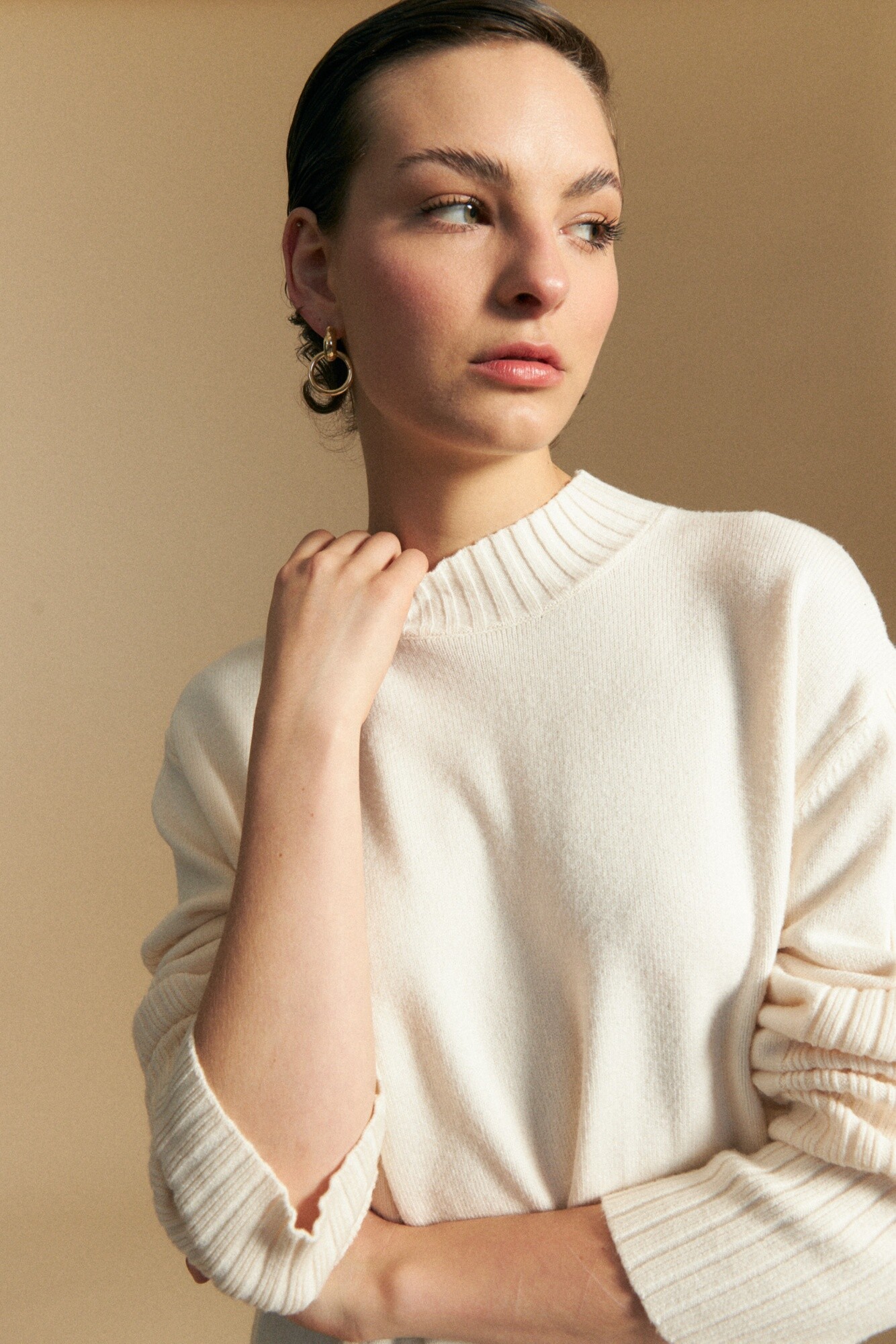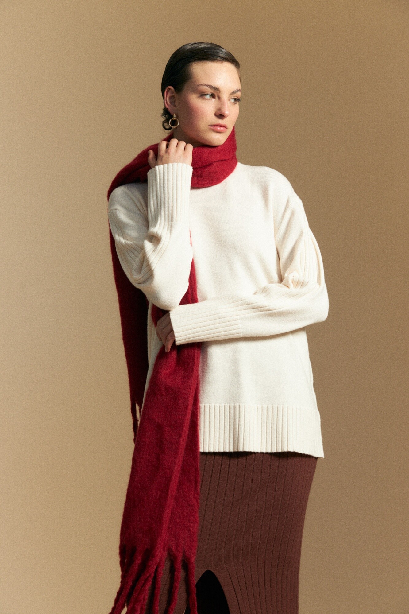 Polera tejida de cuello alto con diseño minimalista y textura suave, ideal como básico versátil de temporada. El calce relajado se combina con terminaciones acanaladas en cuello, puños y ruedo que aportan estructura, mientras que el detalle de trama vertical en mangas y espalda suma interés sutil. El tejido con viscosa brinda suavidad al tacto y una caída liviana, perfecta para usar sola o como primera capa en looks invernales. Una prenda atemporal que se adapta tanto a estilismos urbanos como más clásicos.