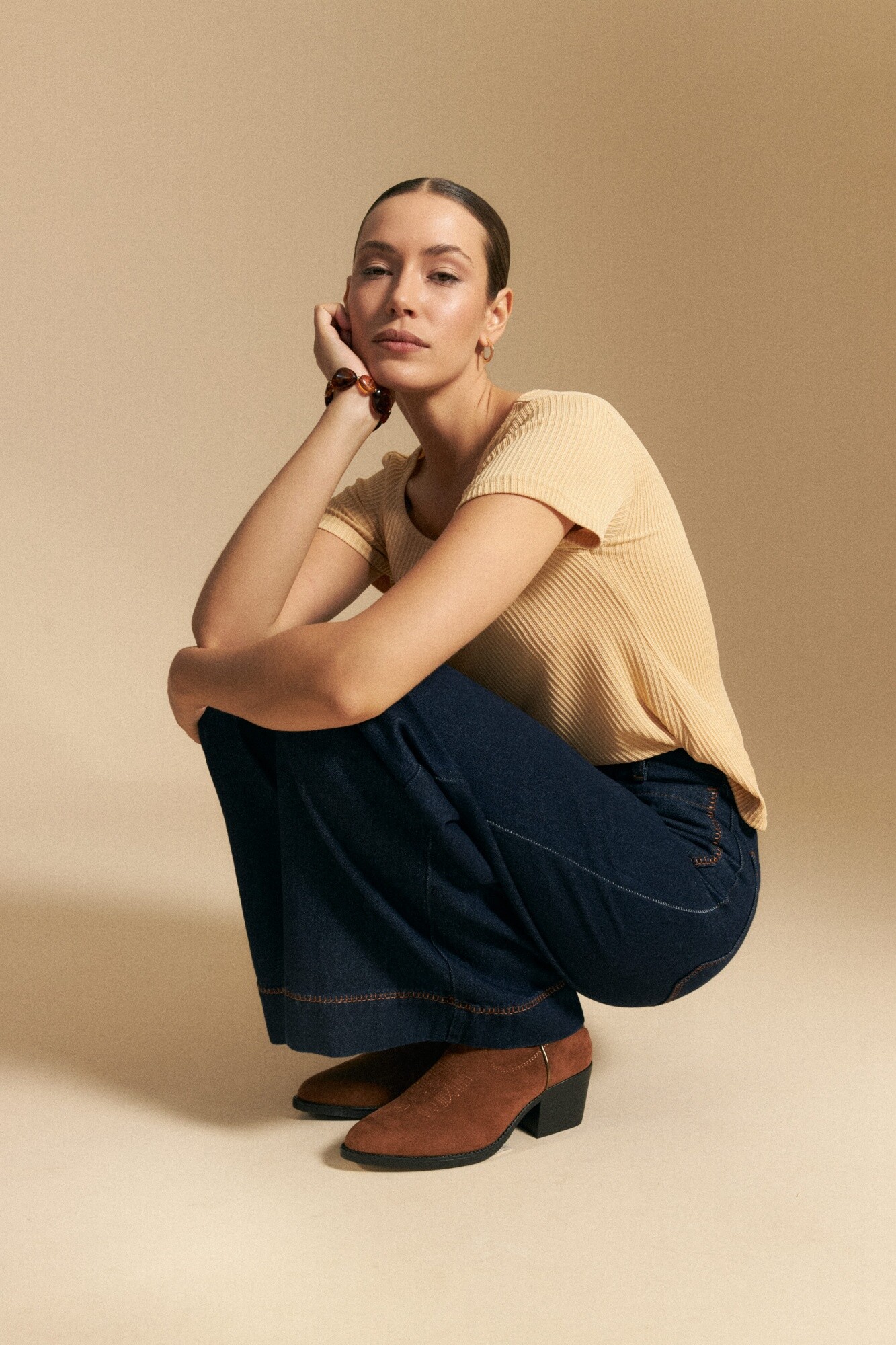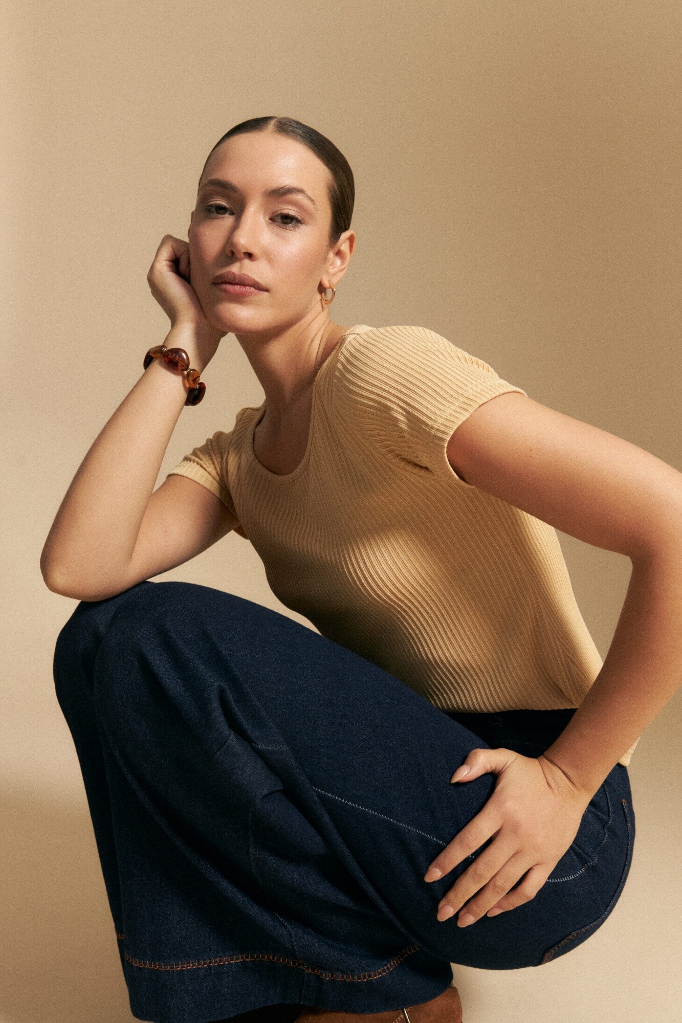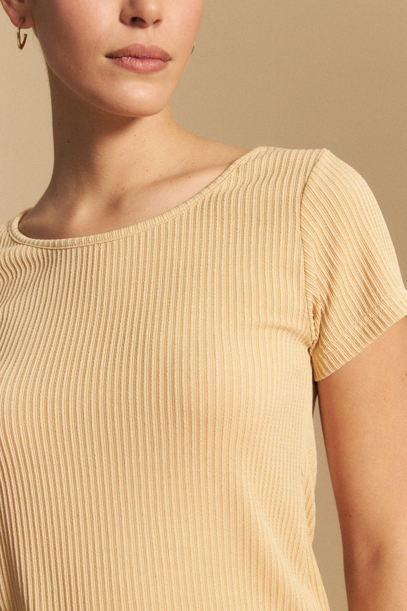 Remera de rib de manga corta y escote redondo, confeccionada en tejido acanalado que se adapta al cuerpo y aporta una silueta favorecedora. Su diseño simple y versátil la convierte en un básico infaltable para el día a día, ideal para combinar con jeans, sastrería o faldas según el estilo que se busque lograr.
