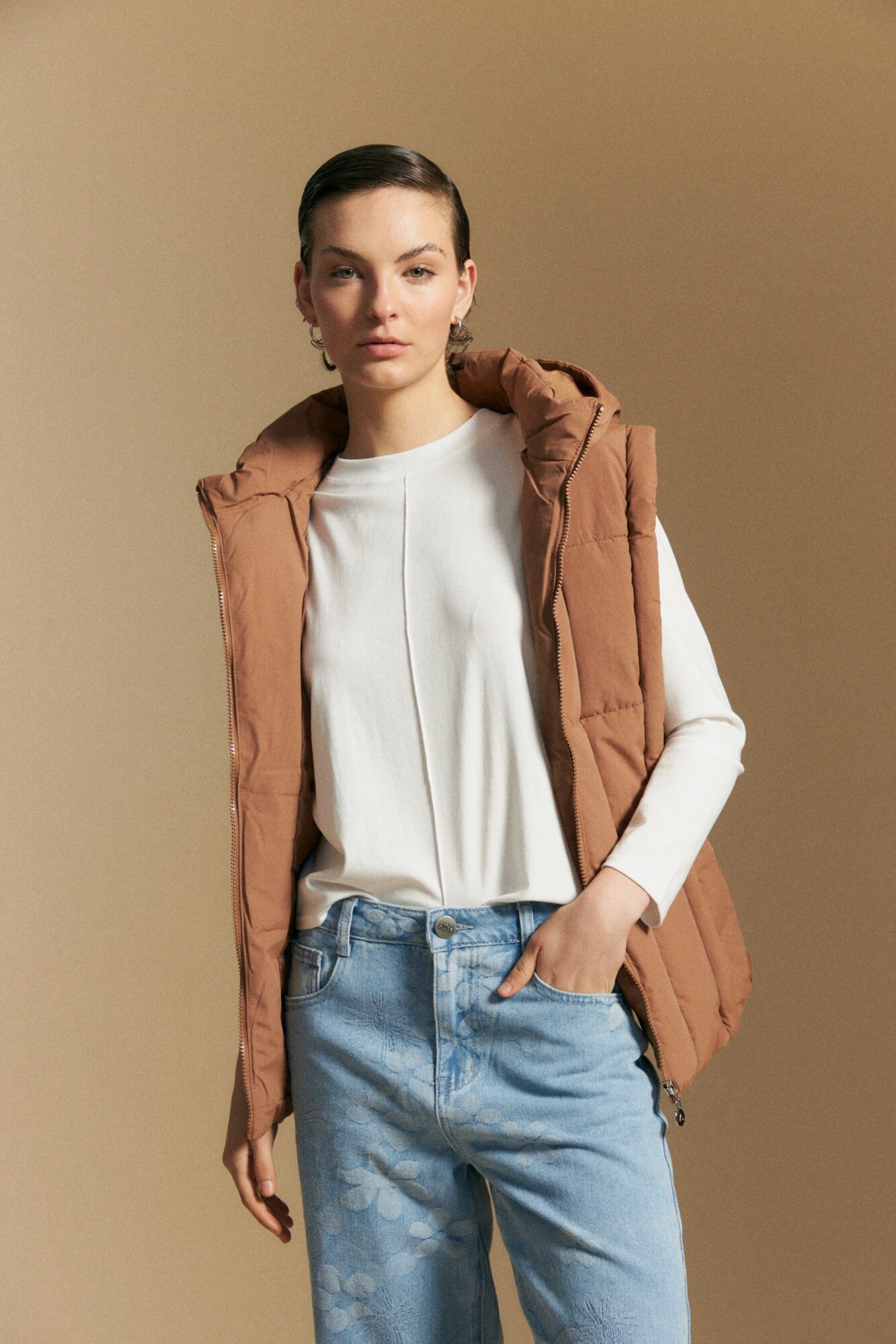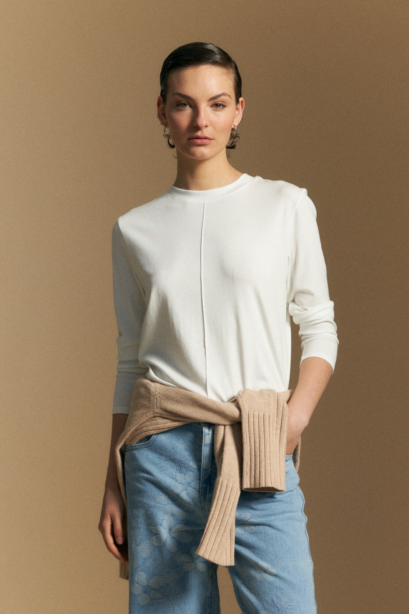 De calce cómodo y caída fluida, se adapta naturalmente al movimiento, funcionando perfecta tanto como protagonista en un look simple como en propuestas en capas. Ideal para combinar con sastrería, denim o piezas más estructuradas, acompañando estilismos clásicos o en tendencia.