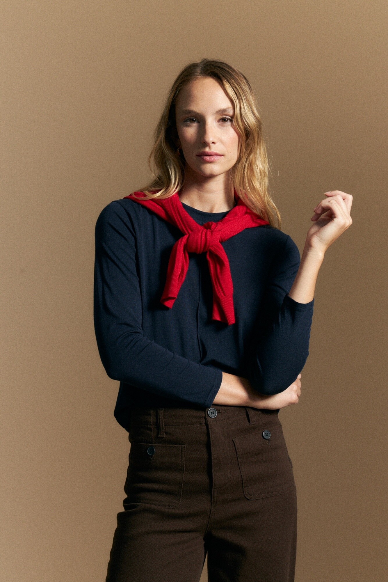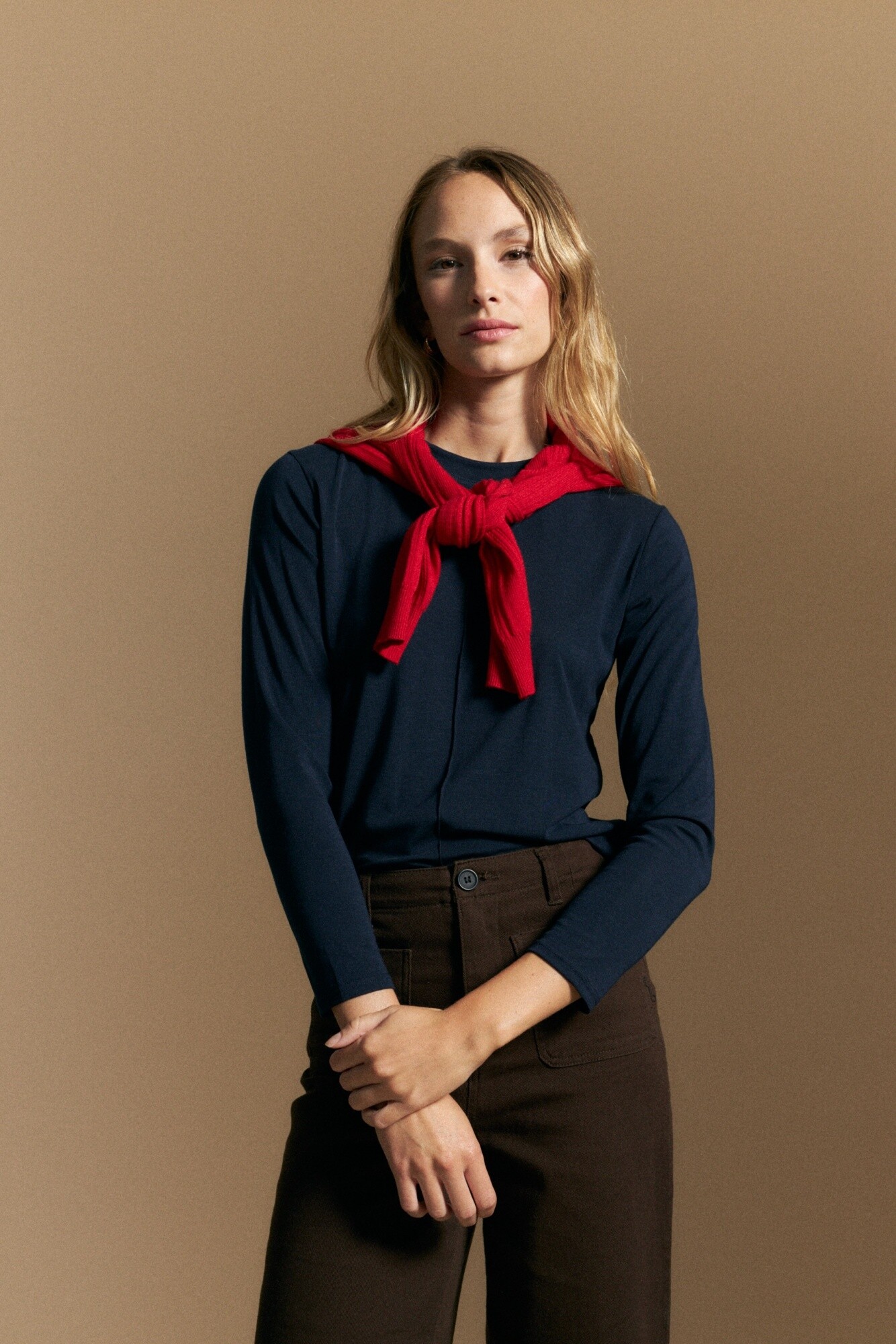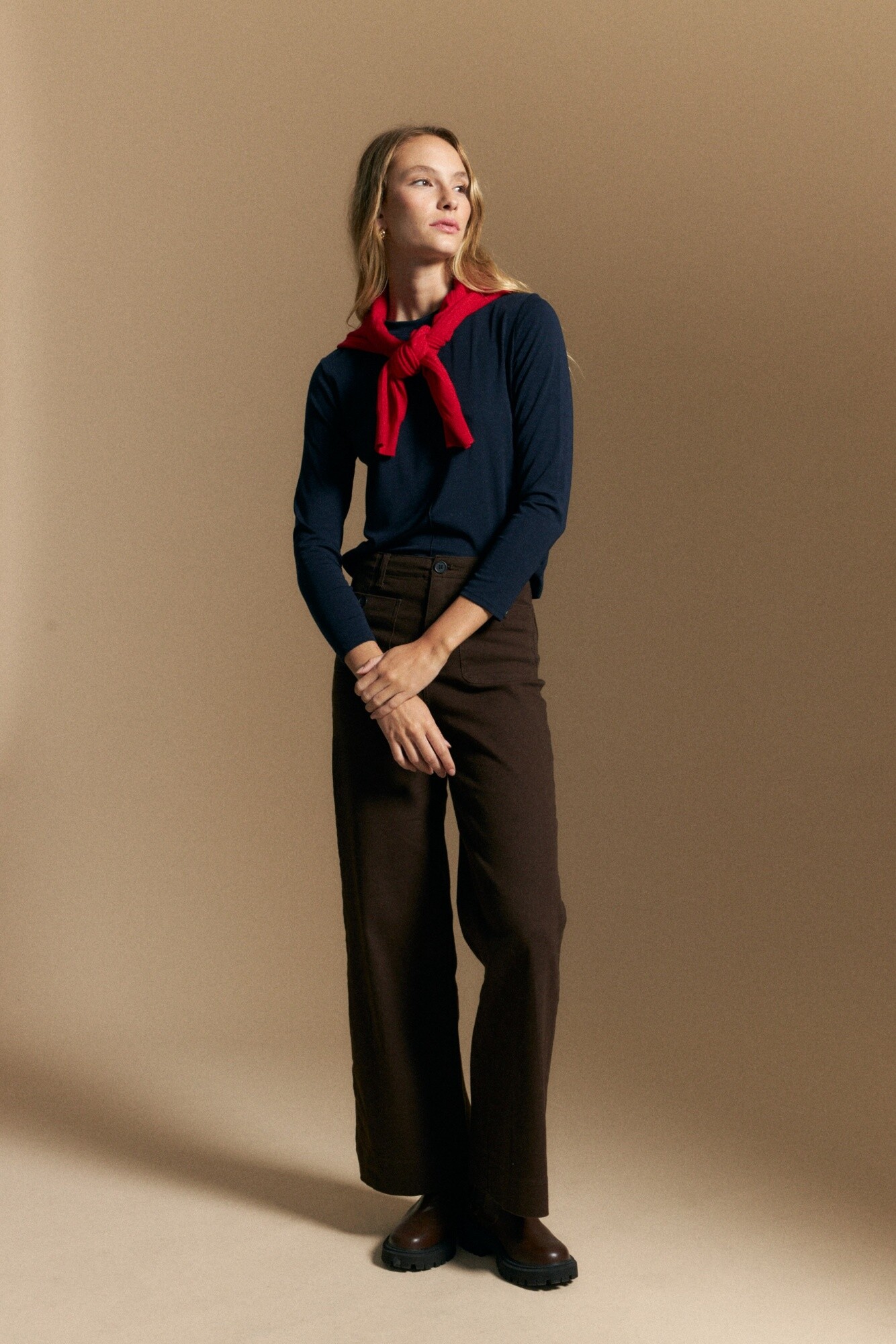 De calce cómodo y caída fluida, se adapta naturalmente al movimiento, funcionando perfecta tanto como protagonista en un look simple como en propuestas en capas. Ideal para combinar con sastrería, denim o piezas más estructuradas, acompañando estilismos clásicos o en tendencia.