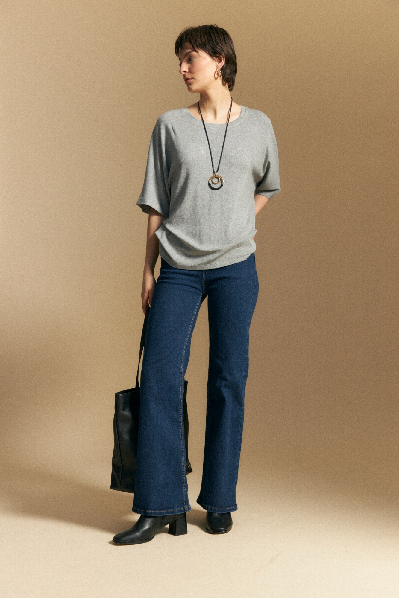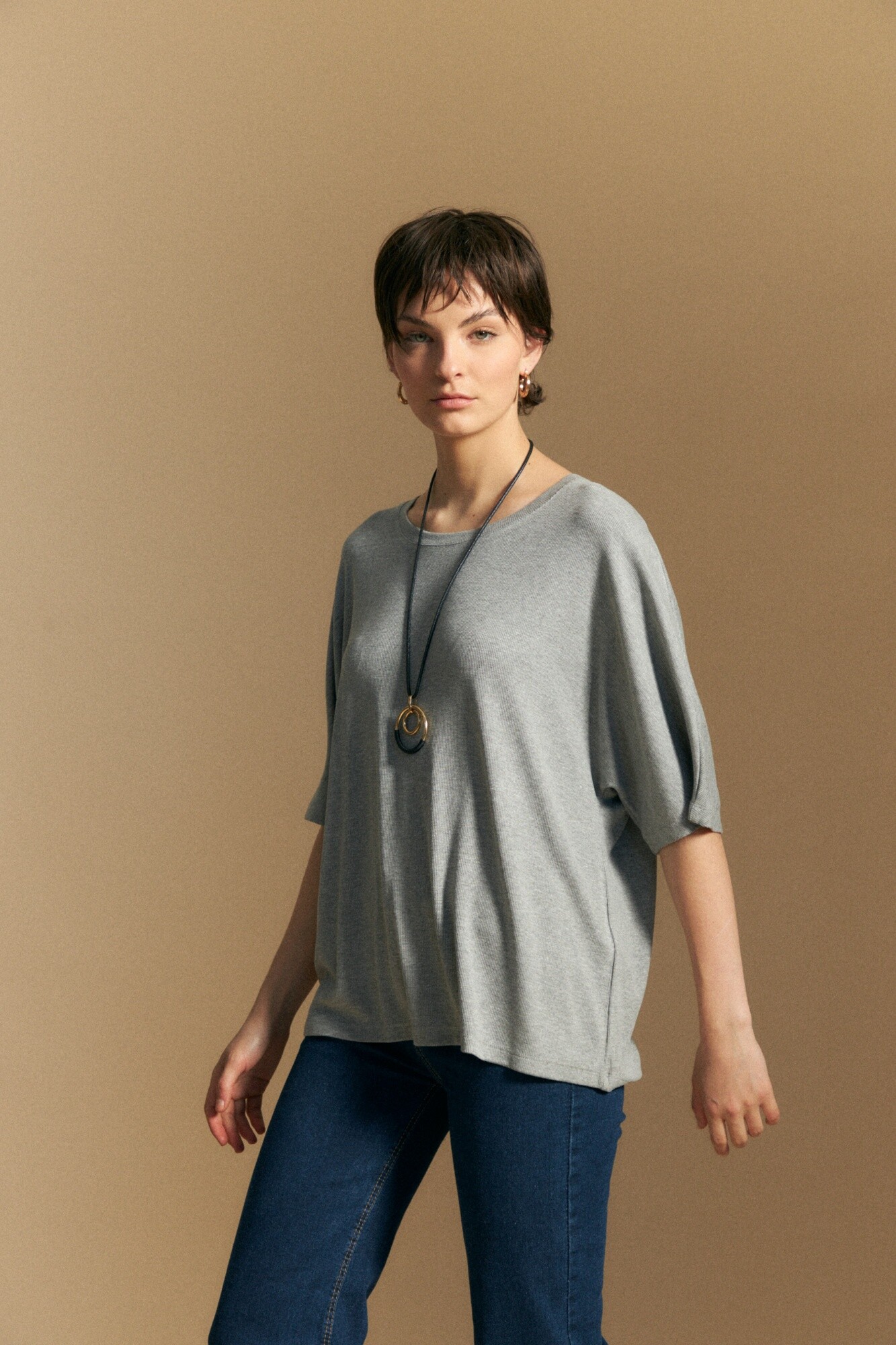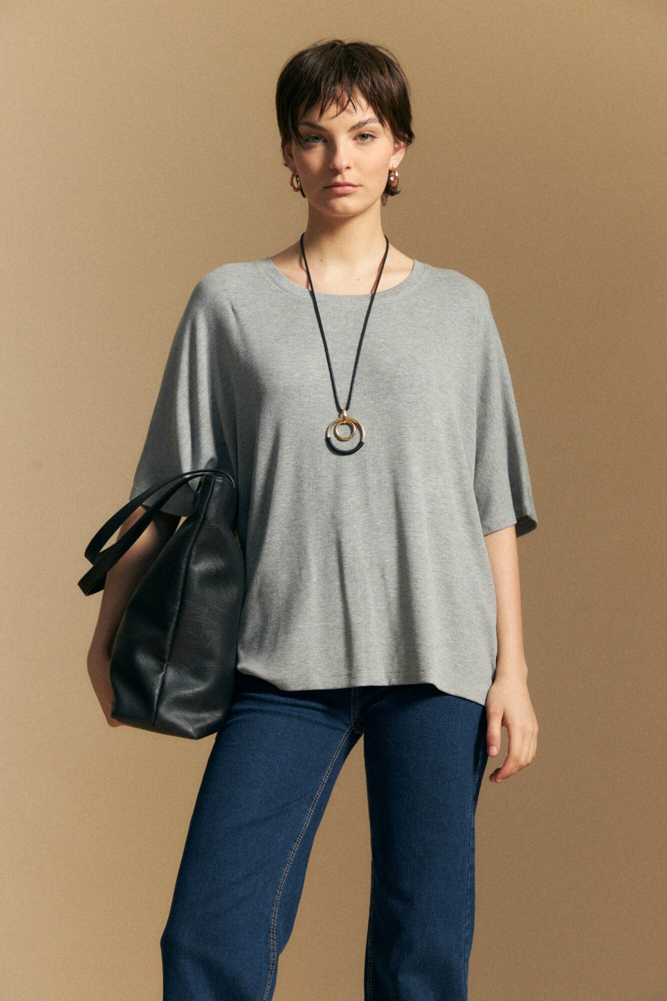 Remera de calce relajado con silueta fluida que aporta movimiento y comodidad en cada uso. Su tejido con base de viscosa ofrece una caída suave y liviana, mientras que el toque de elastano suma flexibilidad para un ajuste confortable. Una opción versátil y en tendencia, ideal para acompañar distintos estilos del día a la noche.