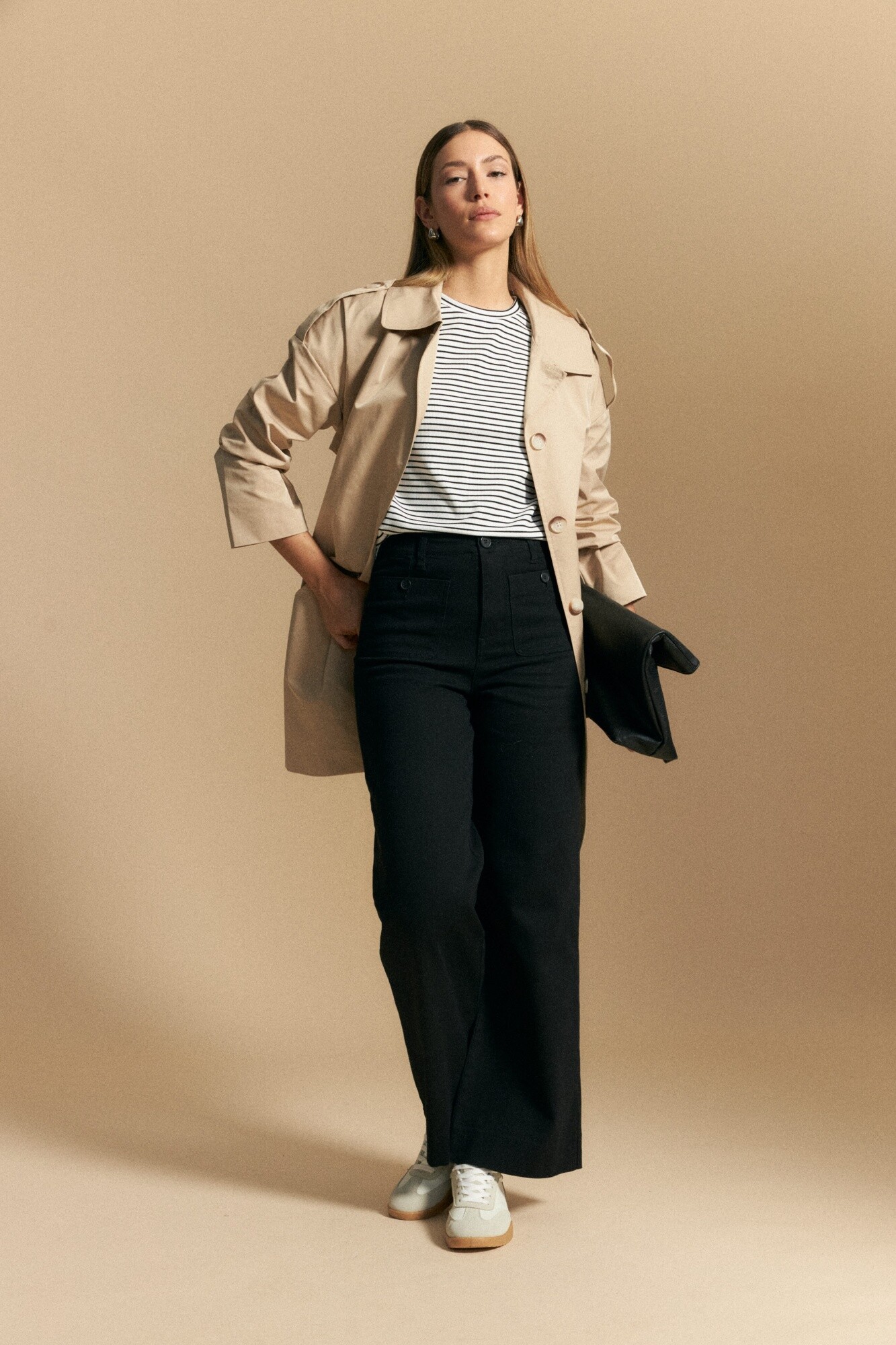 Diseño de silueta relajada que reinterpreta el clásico rayado con un giro femenino y actual. Presenta cuello redondo y mangas cortas con frunce en los hombros, un detalle que suma volumen sutil y eleva el diseño sin perder versatilidad. El tejido con elastano aporta comodidad y una caída suave, ideal para acompañar looks urbanos o combinaciones más pulidas. Una prenda en tendencia que funciona como comodín de guardarropa, clave para elevar cualquier look desde lo esencial.