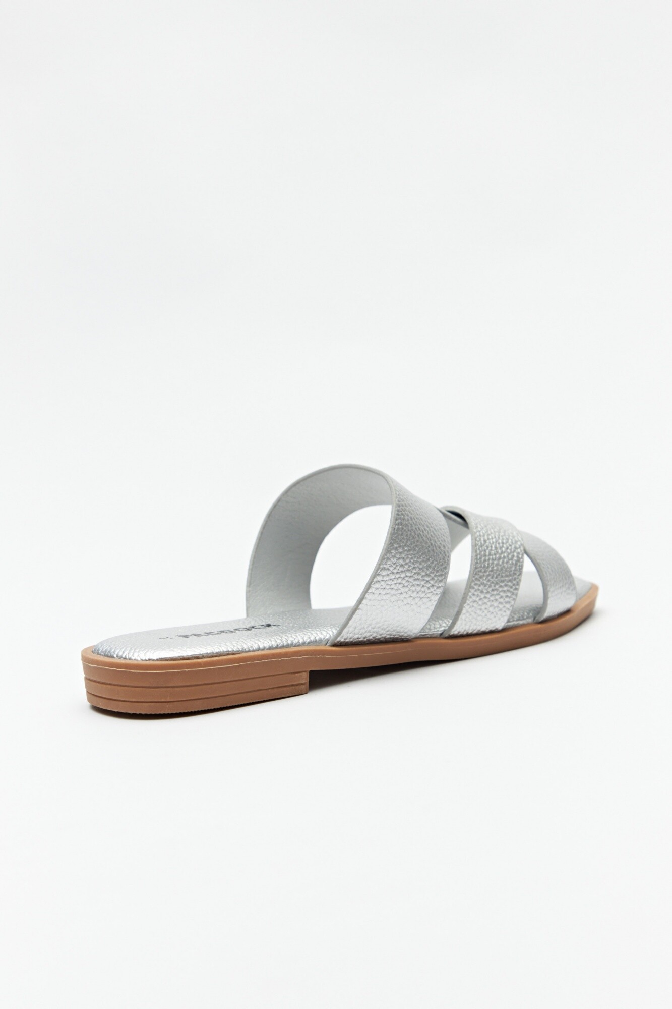Comodidad y estilo en una misma pieza. Estas sandalias planas se destacan por su diseño de tiras anchas cruzadas, que brindan sujeción y un toque moderno. De punta cuadrada y base levemente acolchonada, son perfectas para acompañar tus looks de verano con un aire relajado y versátil. Ideales para combinar con vestidos, jeans o pantalones amplios.