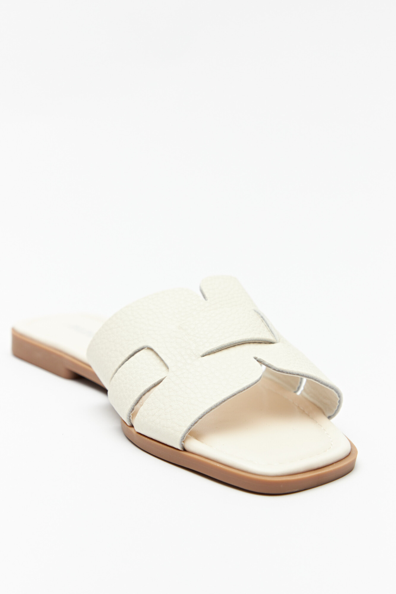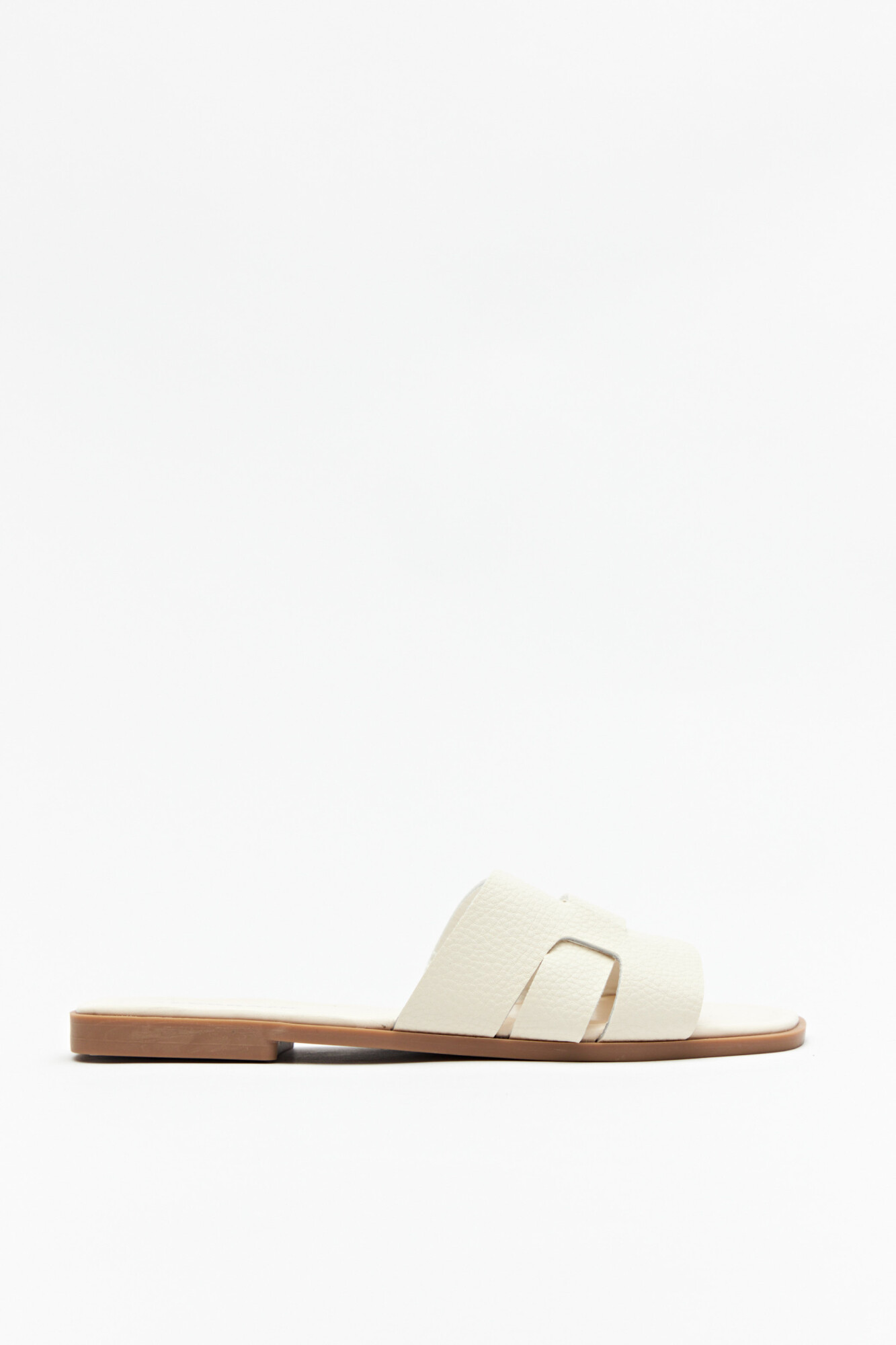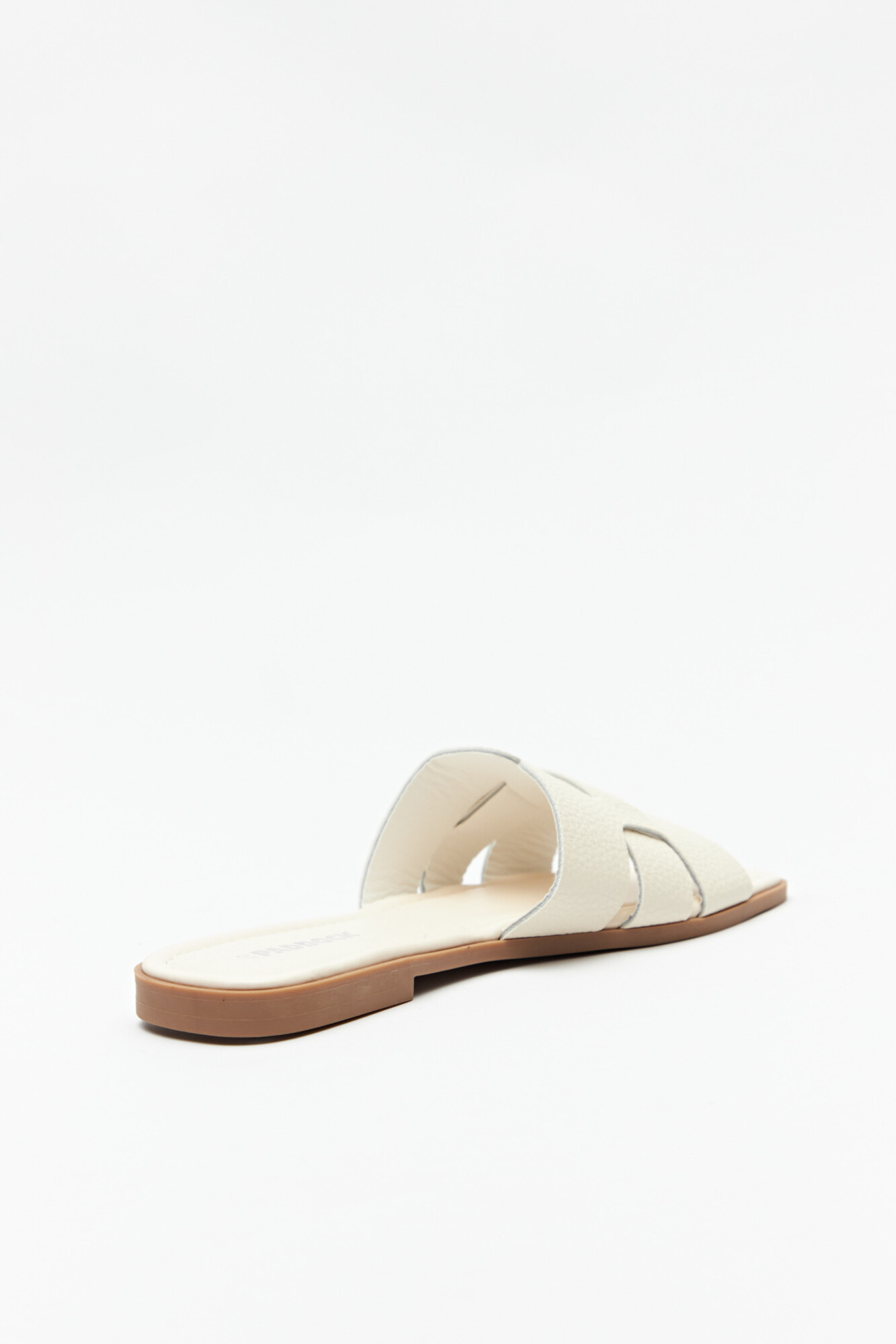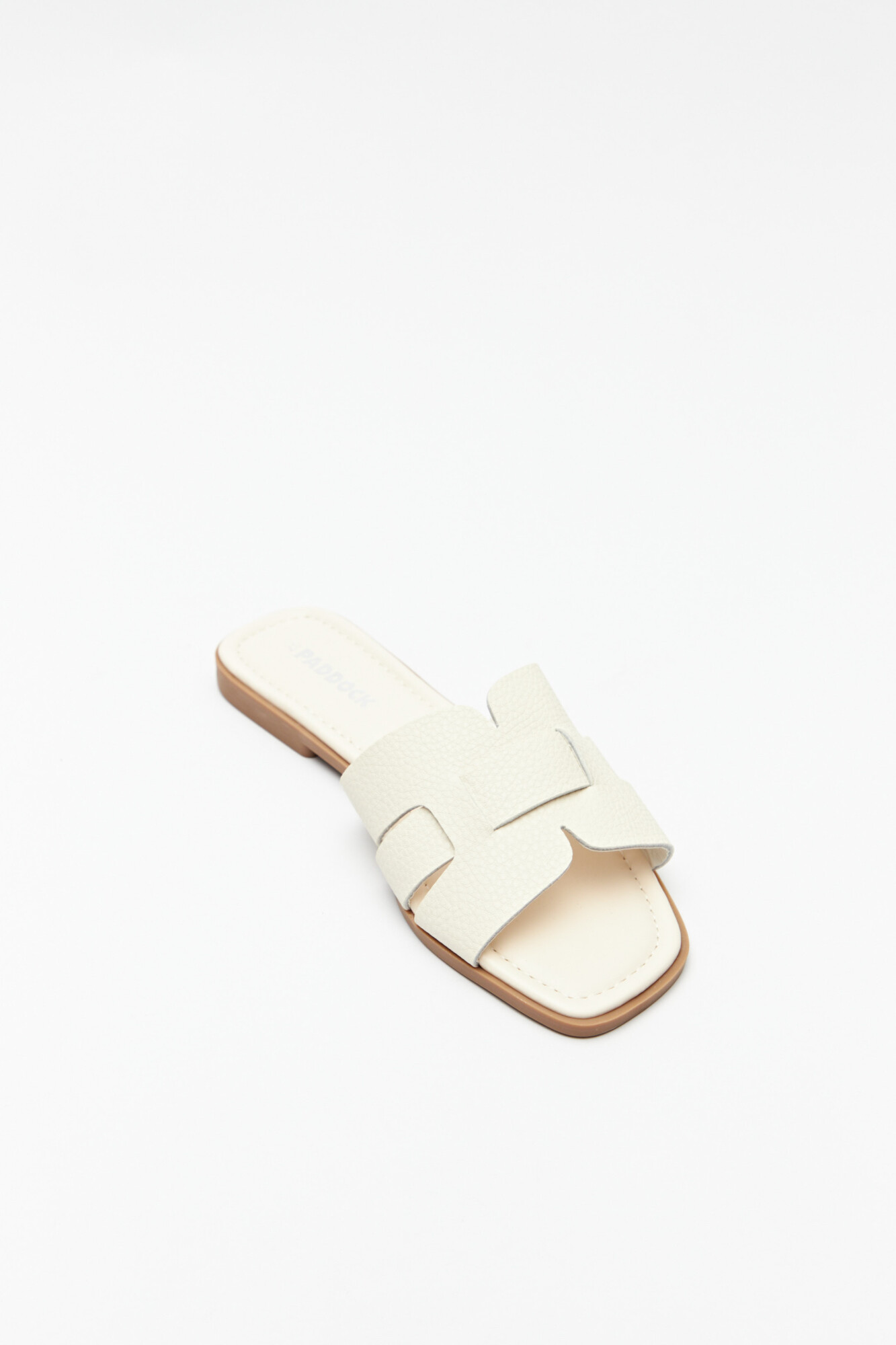 Sandalias bajas abiertas en símil cuero con capellada entrelazada.