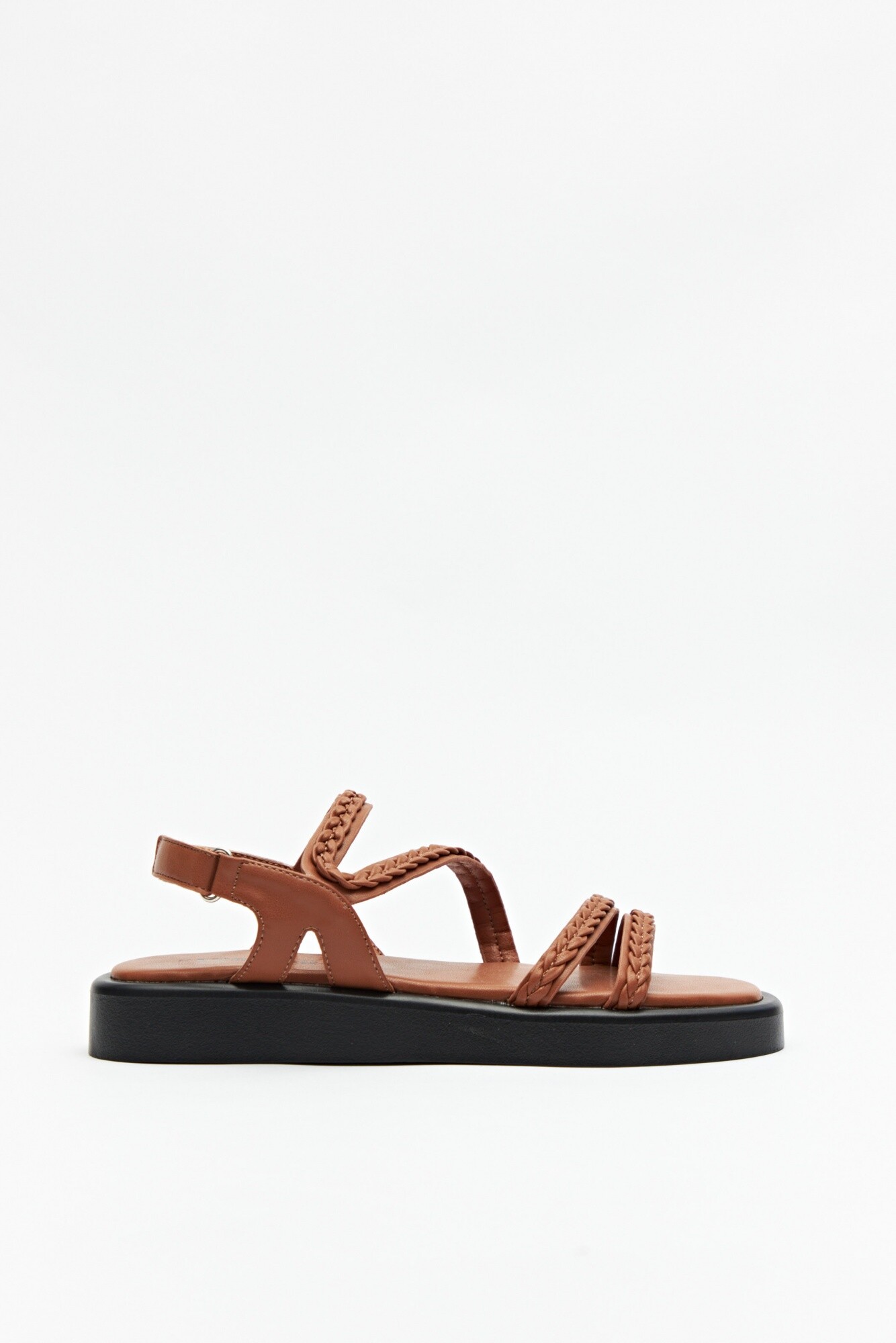 Sandalias en símil cuero con agarre ajustable de velcro en el talón. Sus tiras son trenzadas, lo que aporta textura e identidad a tu look! Su plataforma es de 3cm de alto.