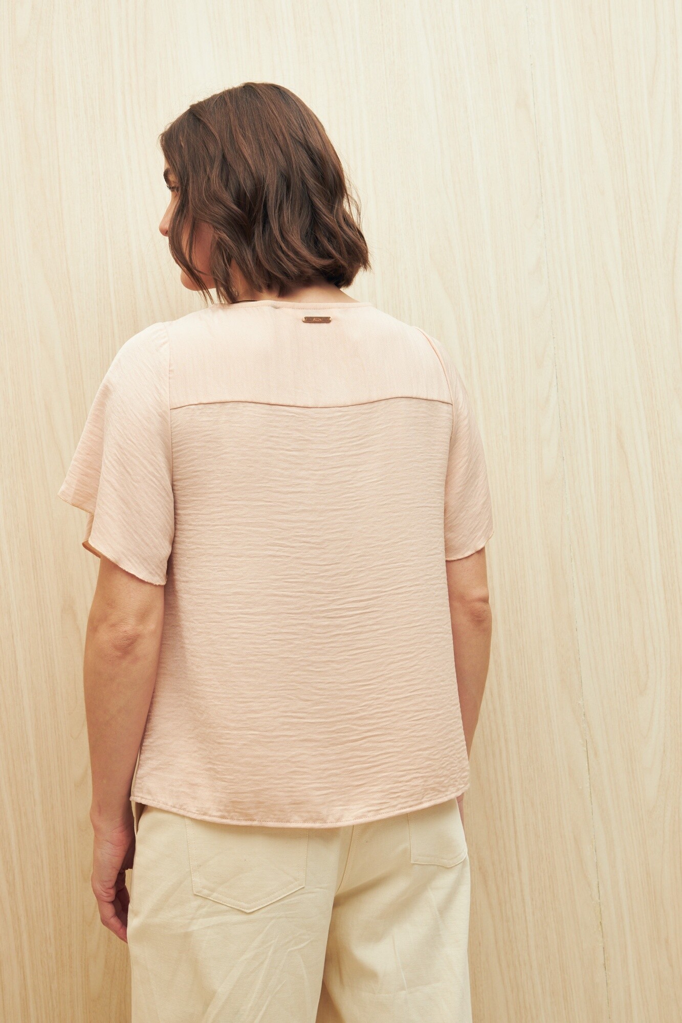 Allie TOP BUTTER TOP BUTTER Blusa con textura sutil y un delicado detalle de encaje sobre el canesú, acompañado por un pequeño volado que realza el diseño. Su corte fluido y mangas amplias aportan movimiento y frescura, perfecta para looks femeninos y cómodos del día a día. 526114405701073