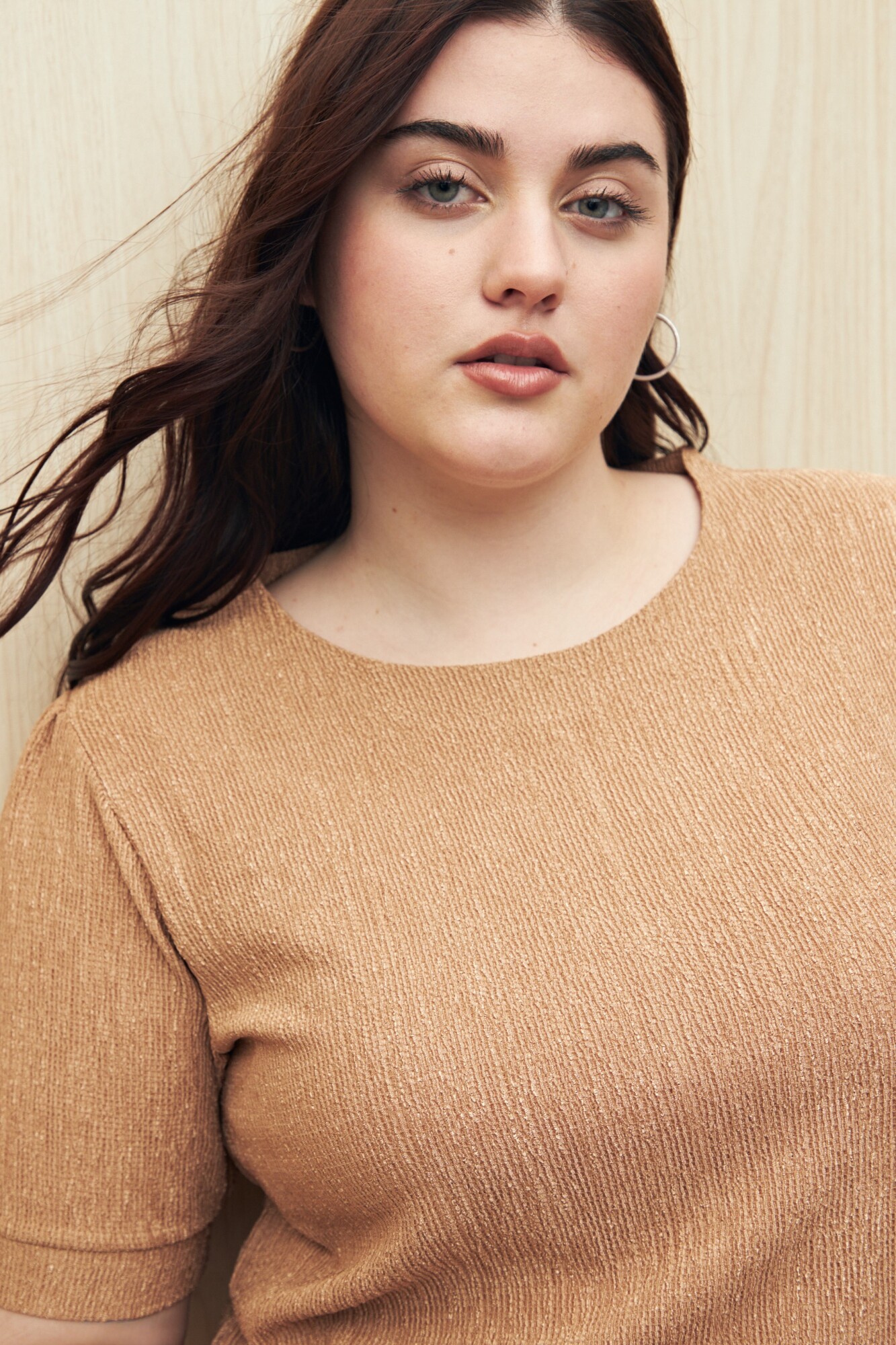 Top de manga corta con textura sutil y un calce que se adapta cómodamente al cuerpo gracias a su toque de spandex. Un básico versátil con acabado elegante que funciona tanto para el día a día como para un look de noche!
