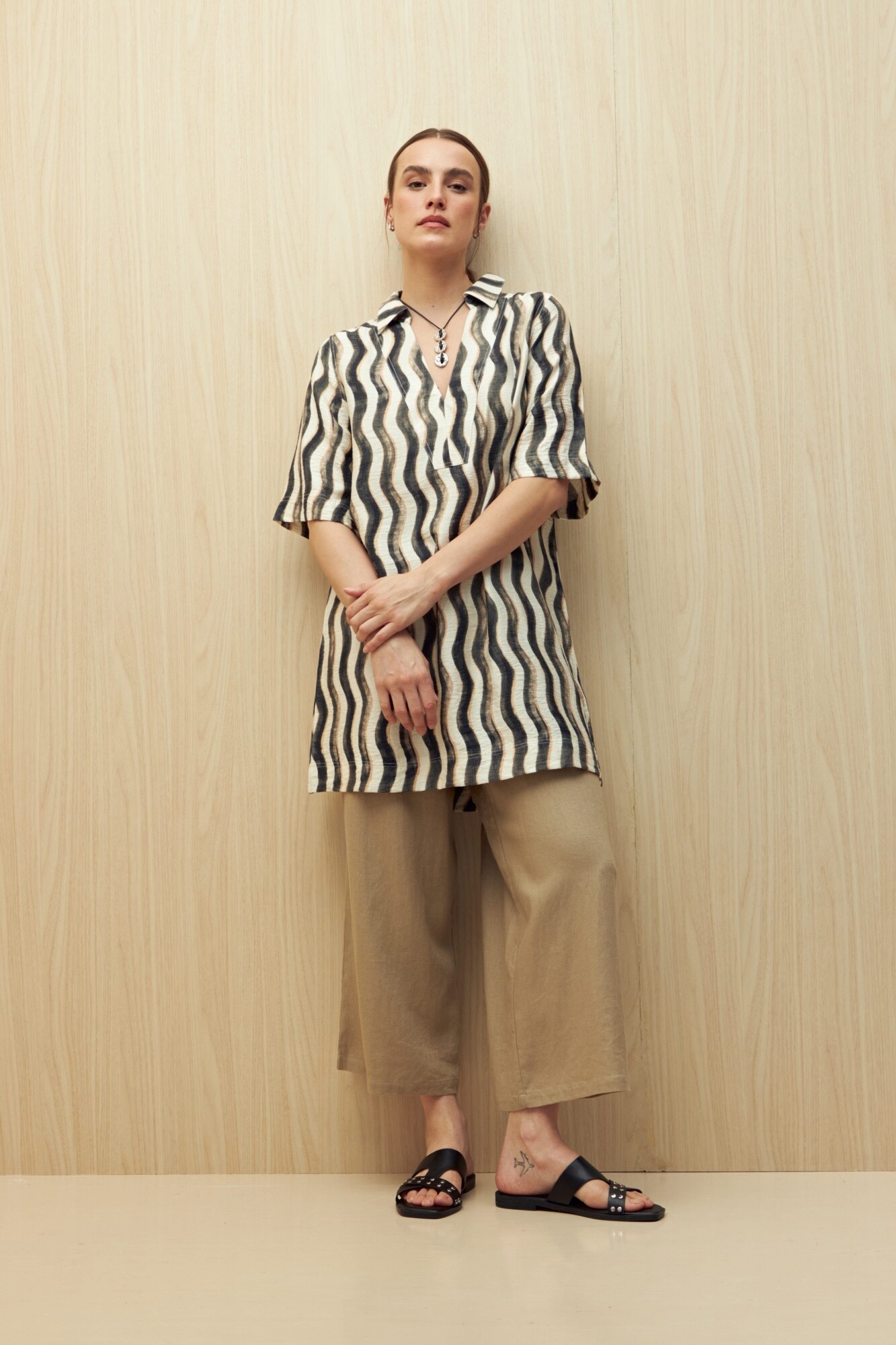 Los distintos estampados —geométricos, florales o de líneas onduladas— lo vuelven una pieza clave para looks de verano versátiles: podés usarlo solo con sandalias o combinarlo con pantalones amplios para un estilo más urbano.