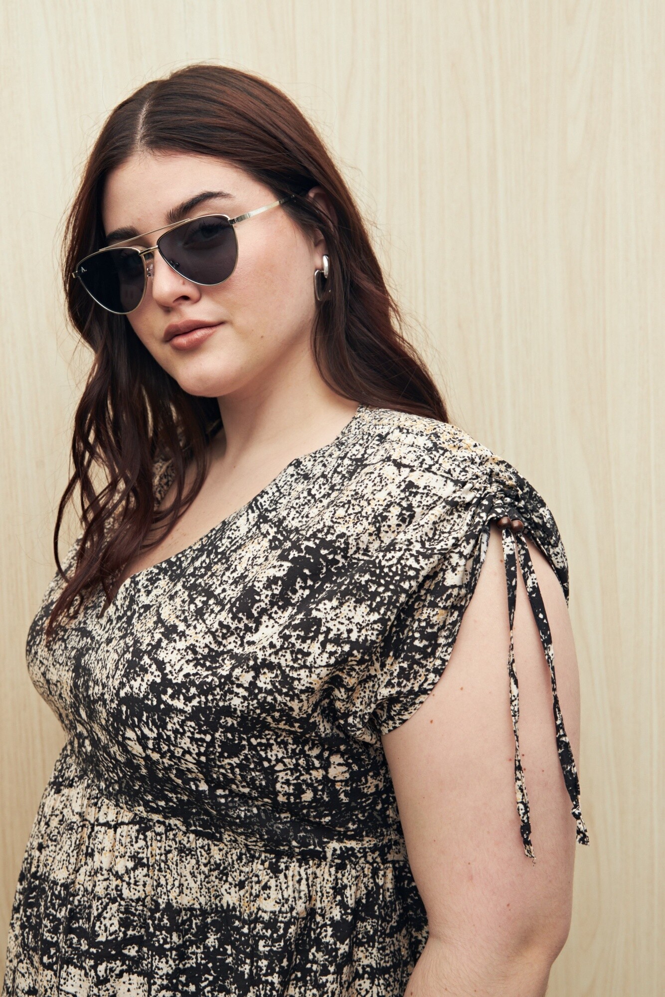 Vestido largo con escote en V y mangas cortas con lazo regulable que permite ajustar el frunce. Con un fit fluido y favorecedor, destaca por su caída liviana y movimiento natural. Perfecto para looks relajados con un toque bohemio.